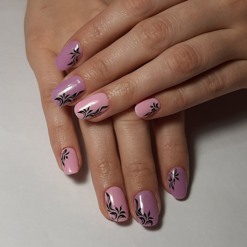 Розовый маникюр с рисунком