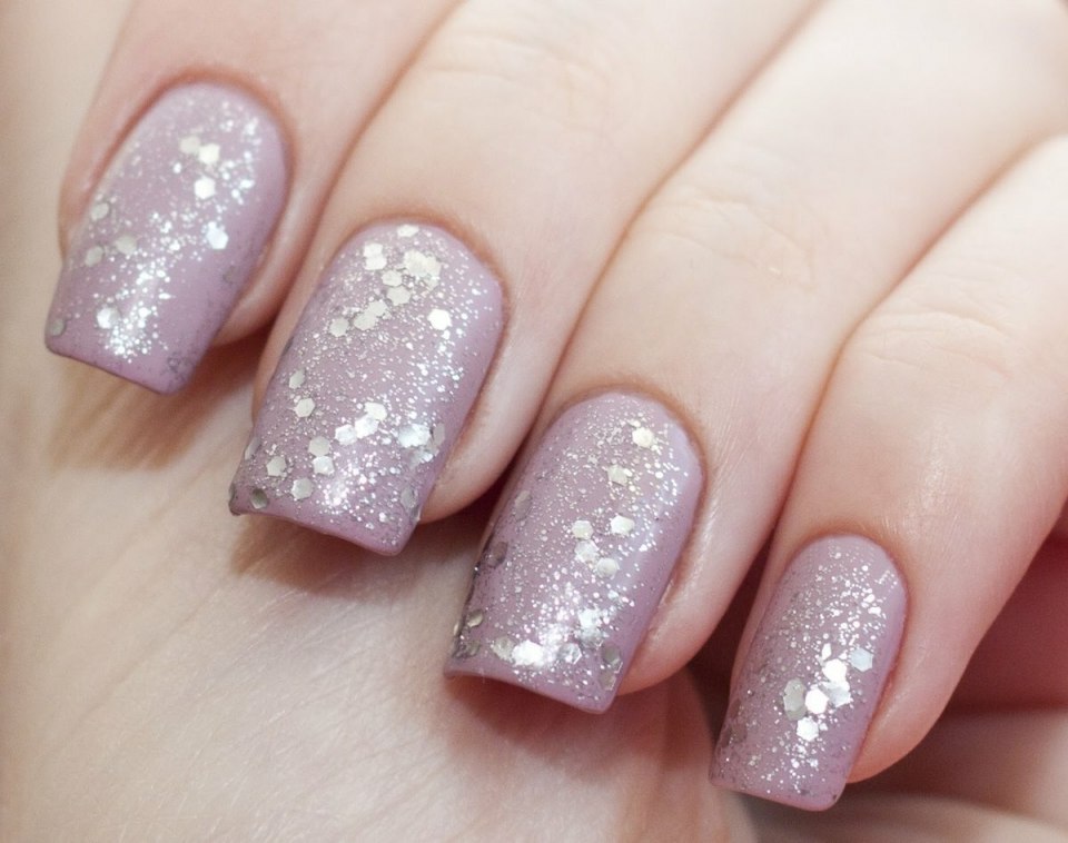 Серебристый маникюр на короткие полупрозрачный (40 фото)