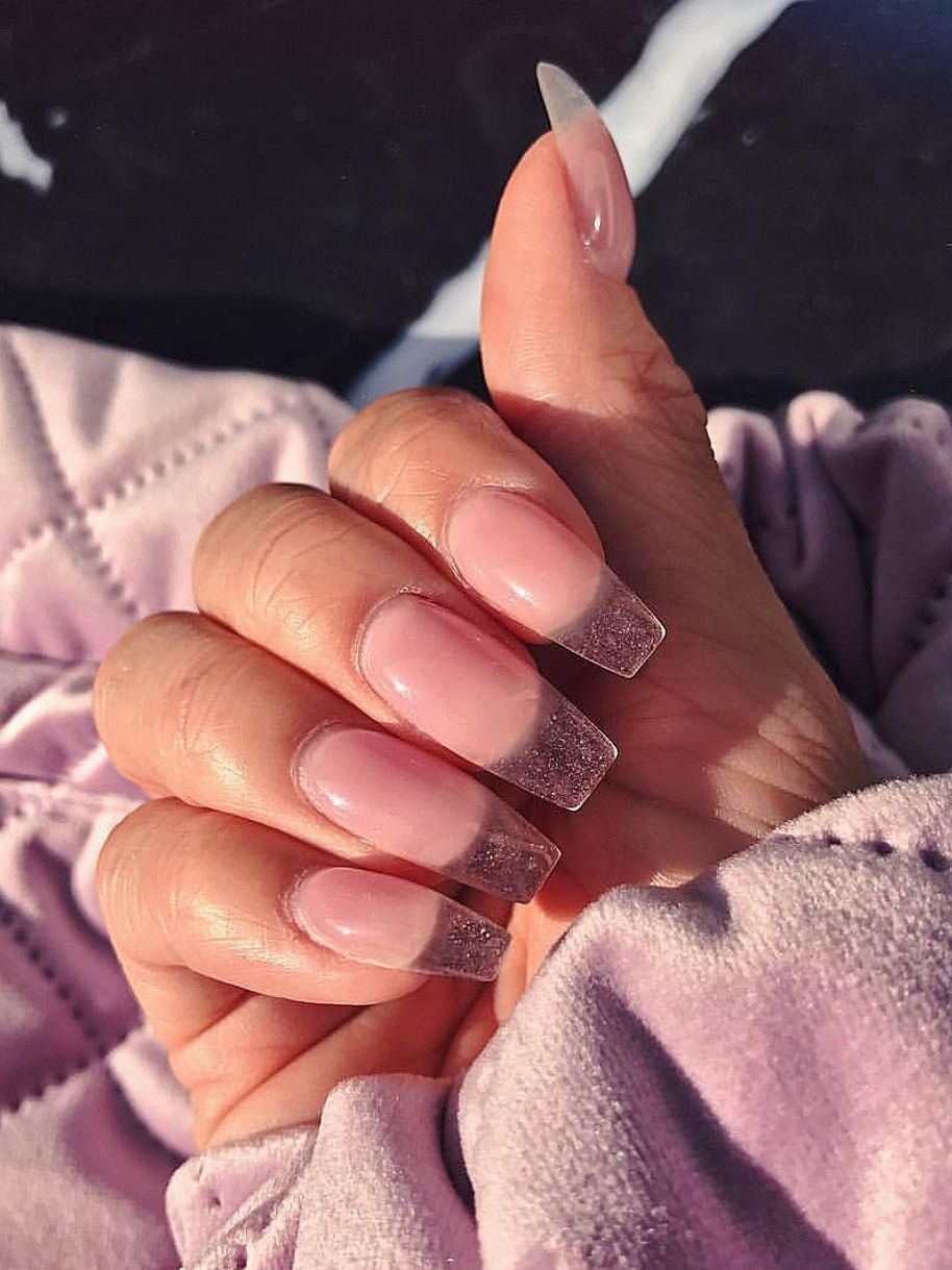 Розовые ногти с блестками