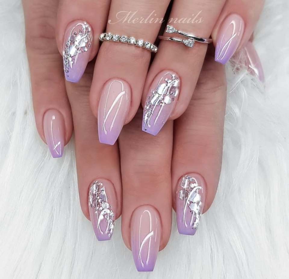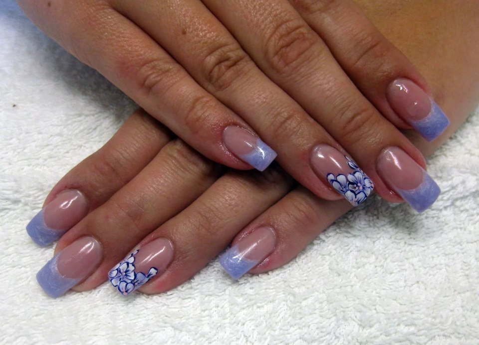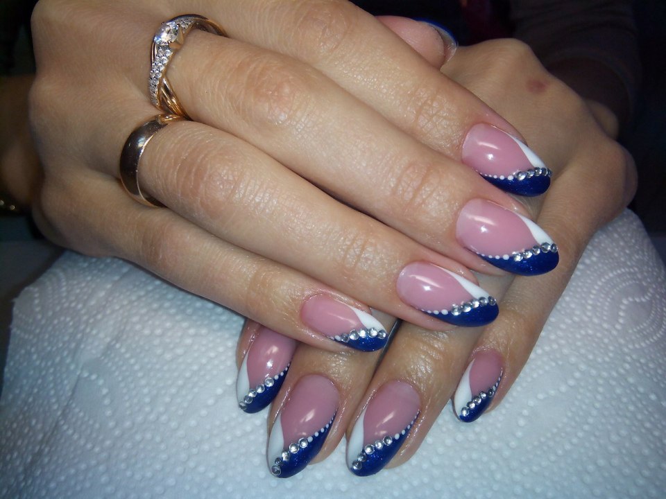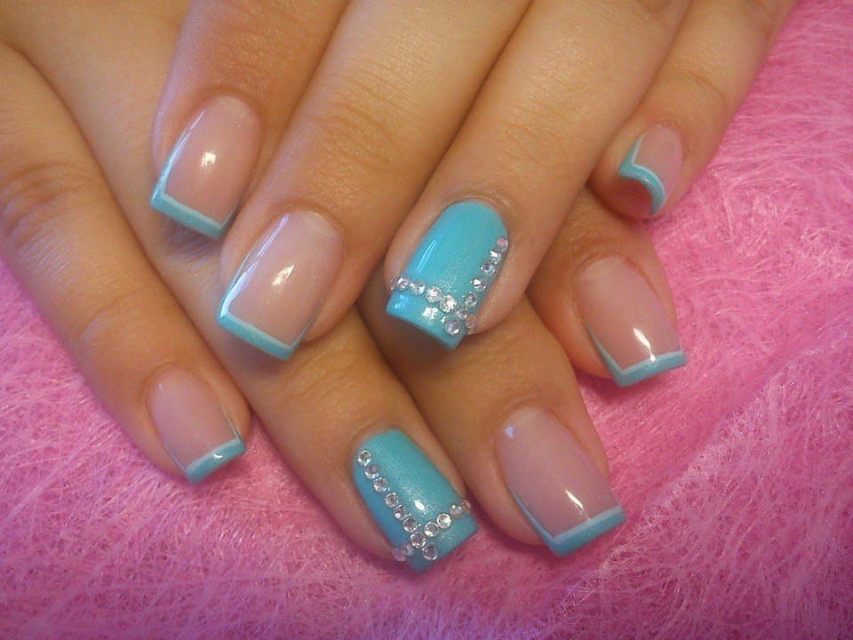 Маникюр френч цветной с рисунком и стразами (51 фото)
