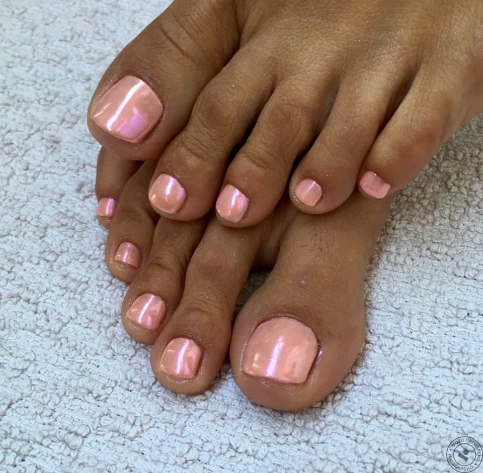 Персиковые ногти на ногах