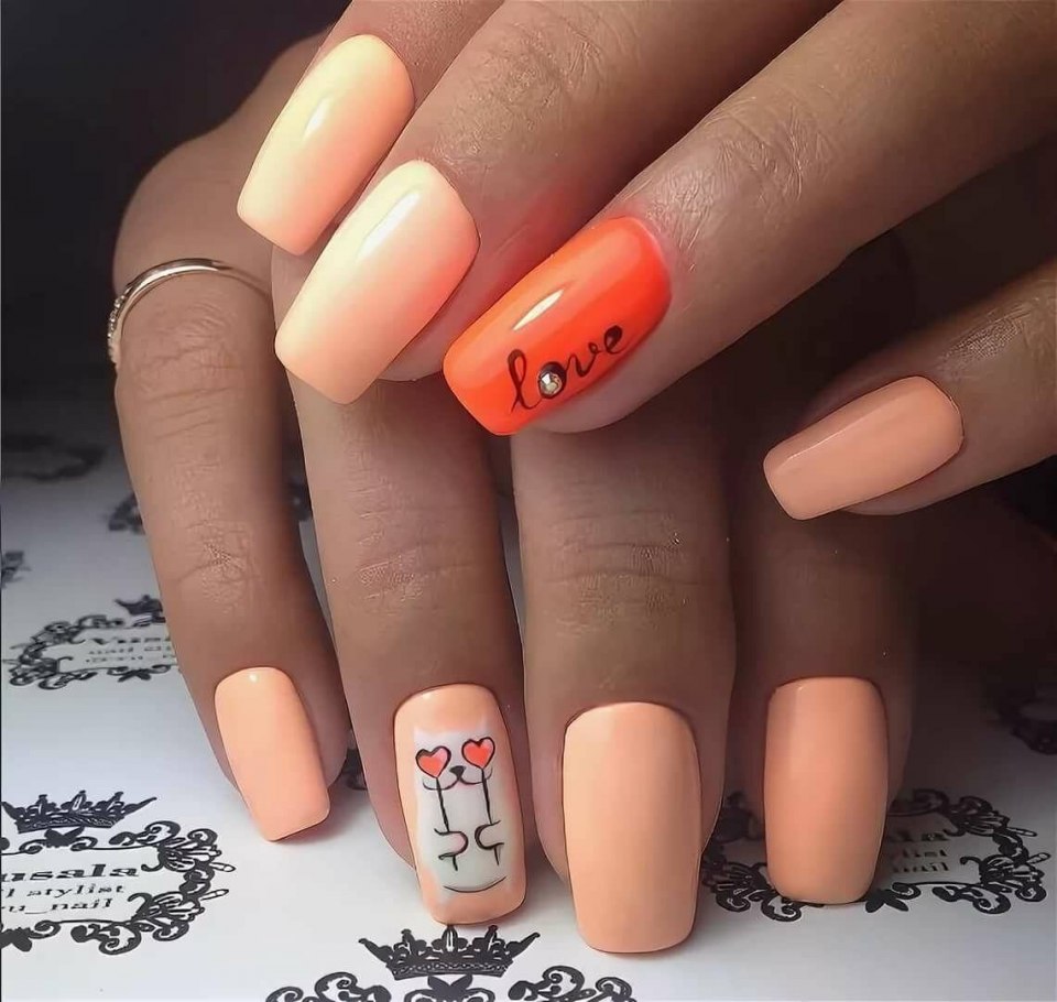 Маникюр персикового цвета