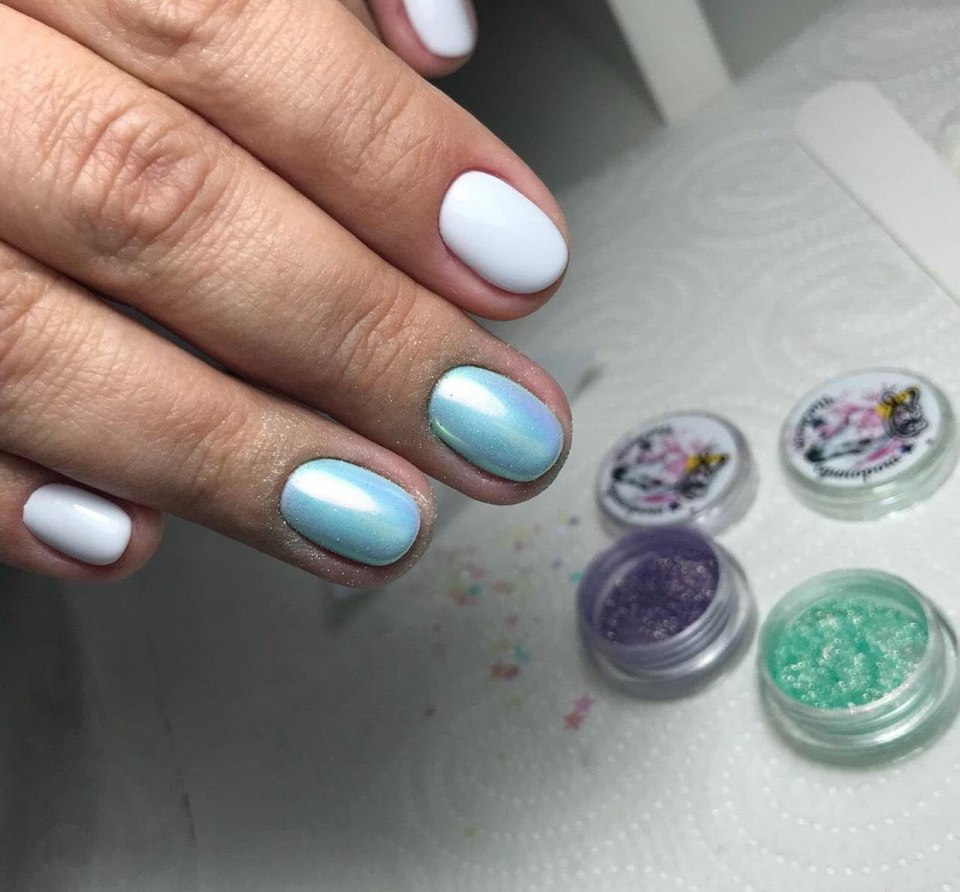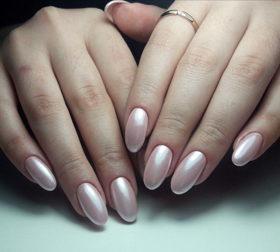 Маникюр на короткие ногти втирка жемчужная (23 фото)