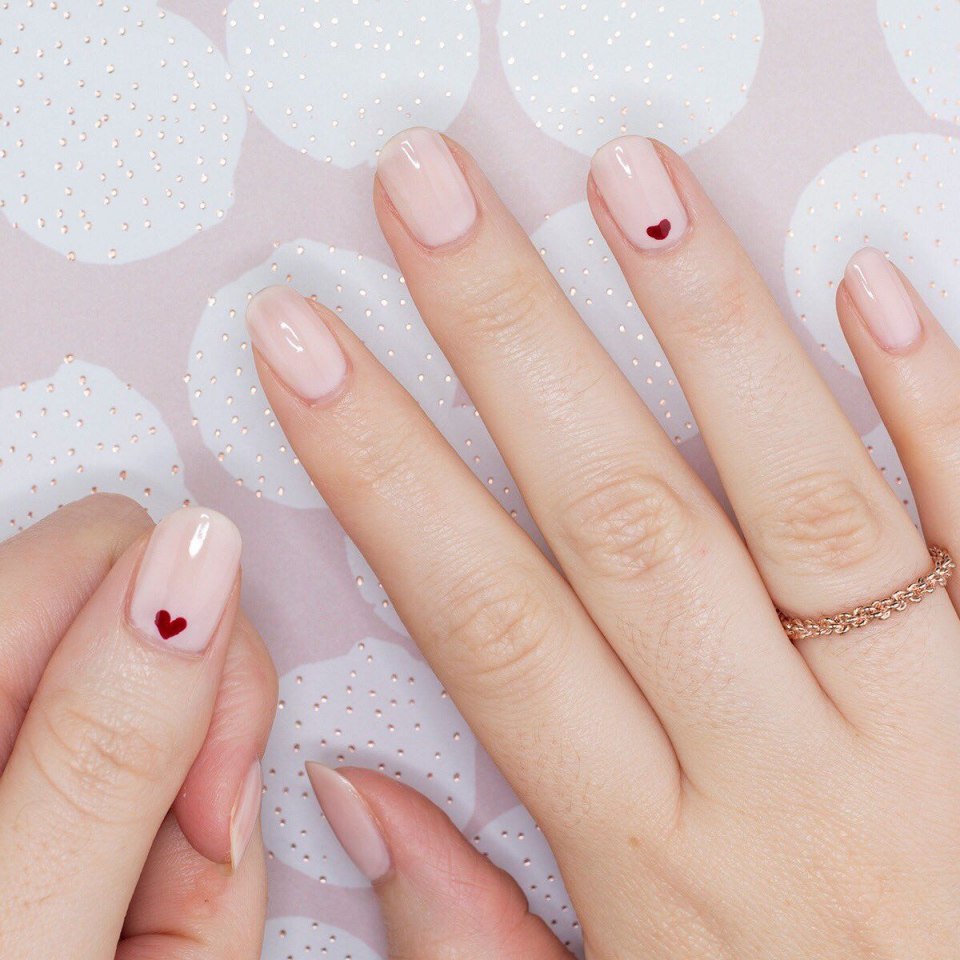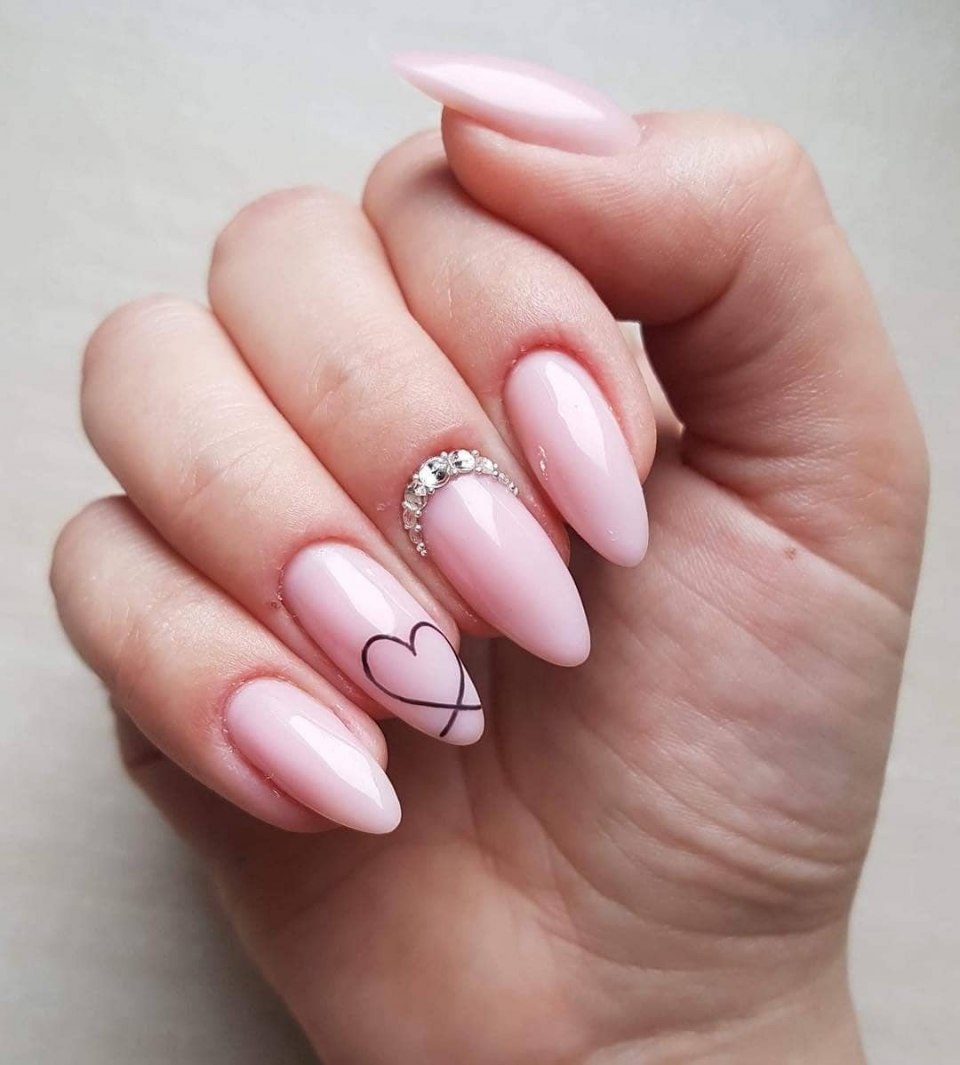 Розовый маникюр с сердечком на одном пальце (32 фото)