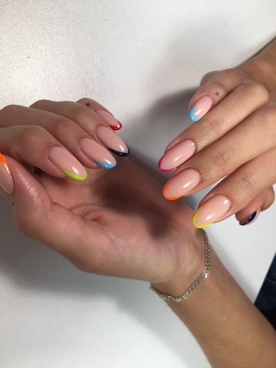Маникюр френч цветной миндальная форма пастельный (27 фото)