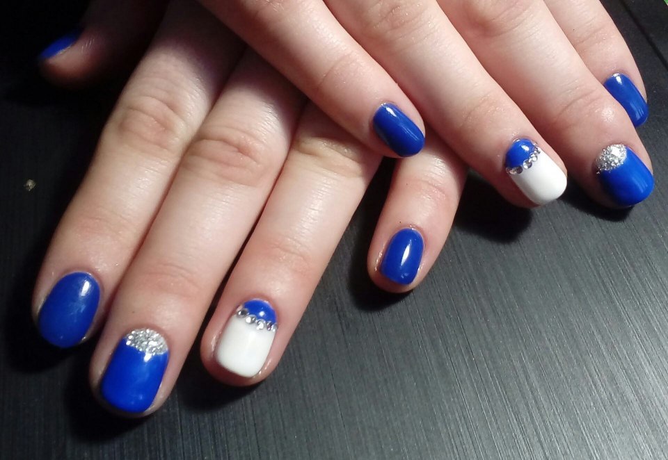 Маникюр шеллак синий с белым