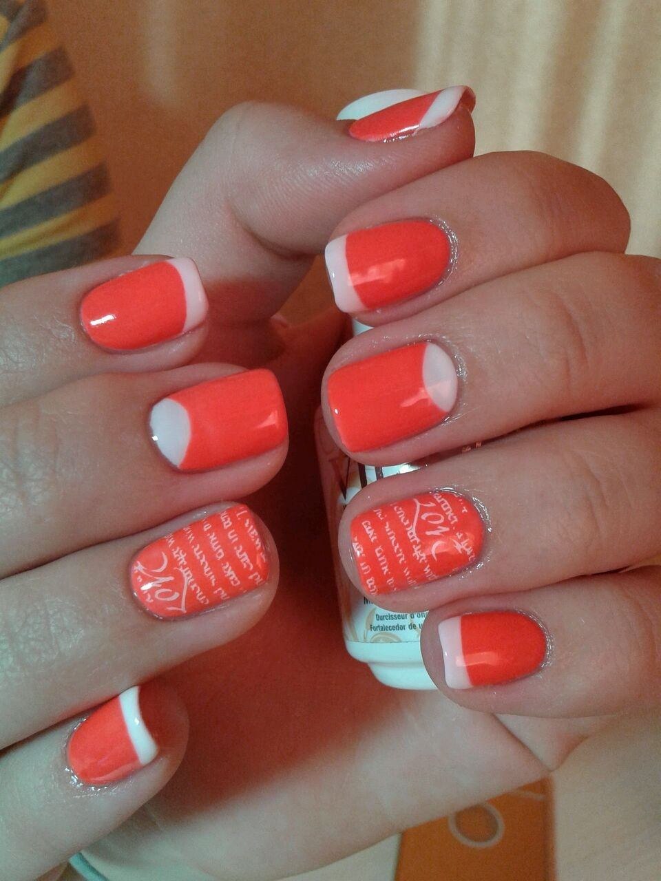 Ярко кораловыйфренч на ногтях