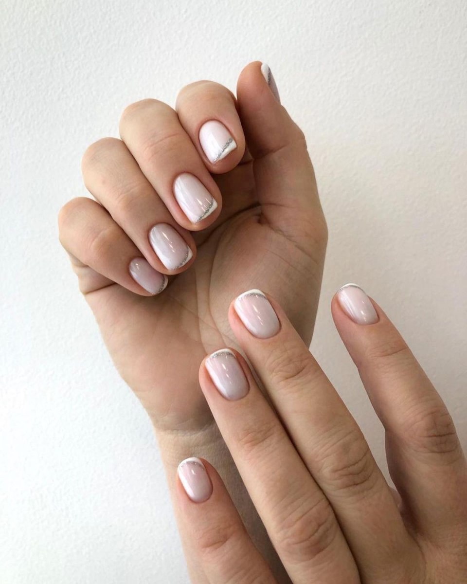 Серебристый нежный френч на ногтях