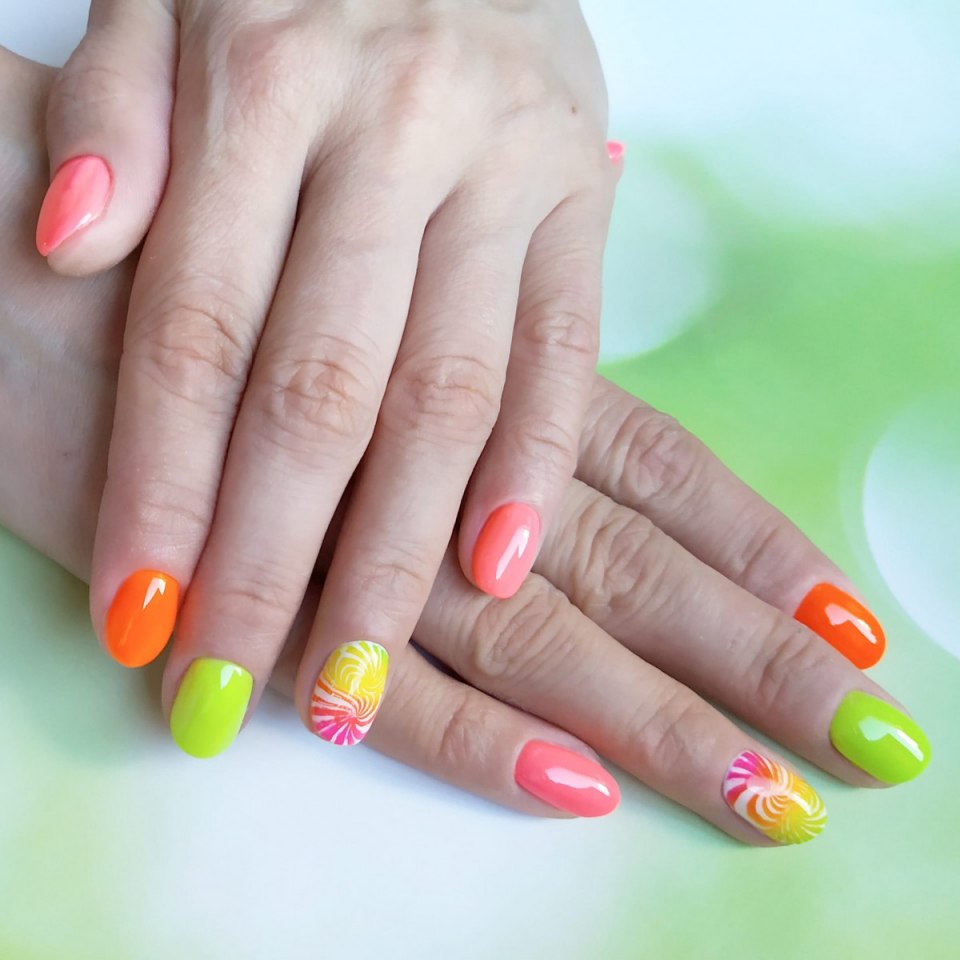 Дизайн ногтей летний яркий с рисунком на короткие ногти (34 фото)