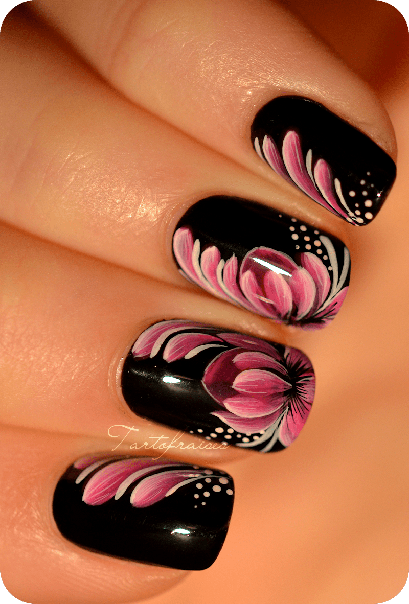 Розовый маникюр с цветами