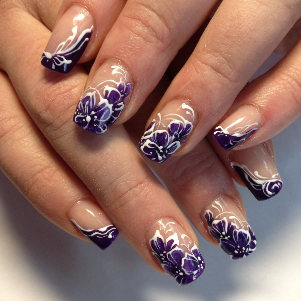 Французский маникюр с цветами