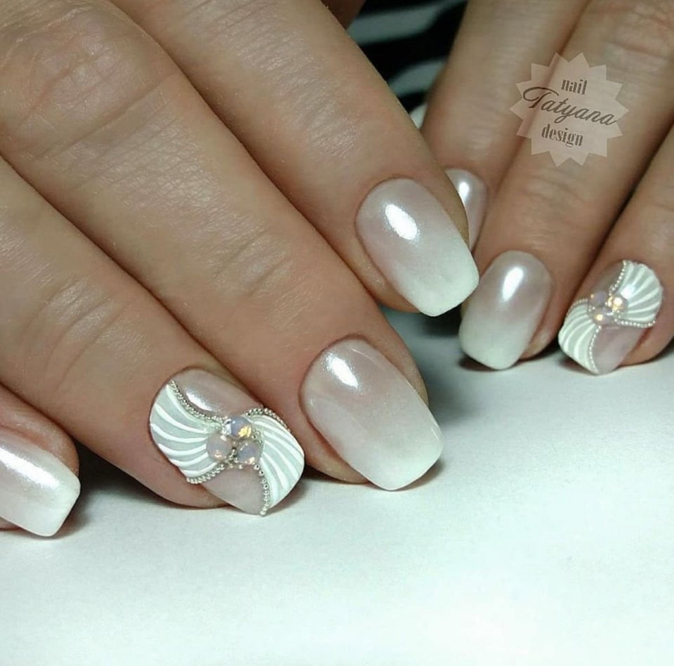 Перламутровый маникюр с рисунком дизайн (36 фото)