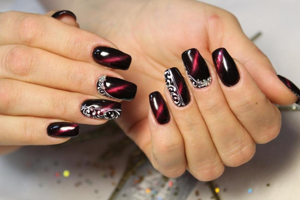 Кошачий глаз маникюр дизайн светлые тона с рисунком