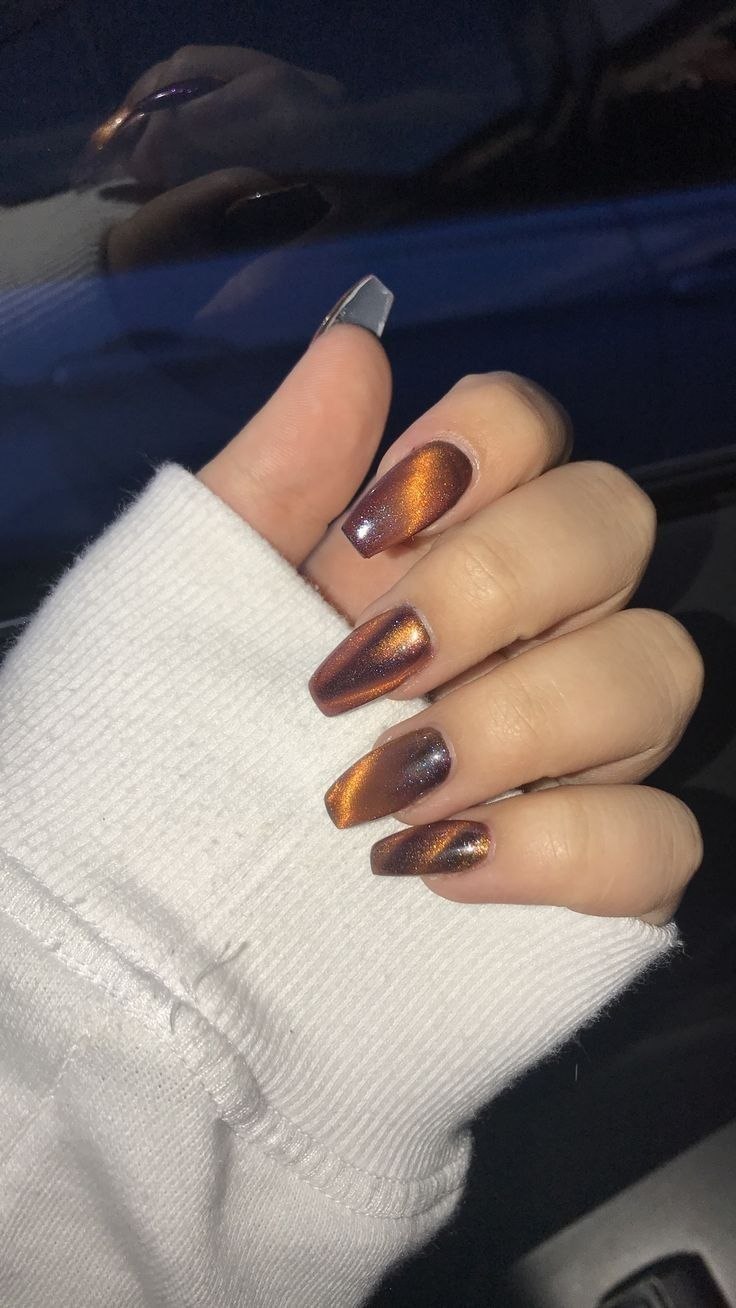 Кошачий глаз маникюр на миндальных ногтях со стразами