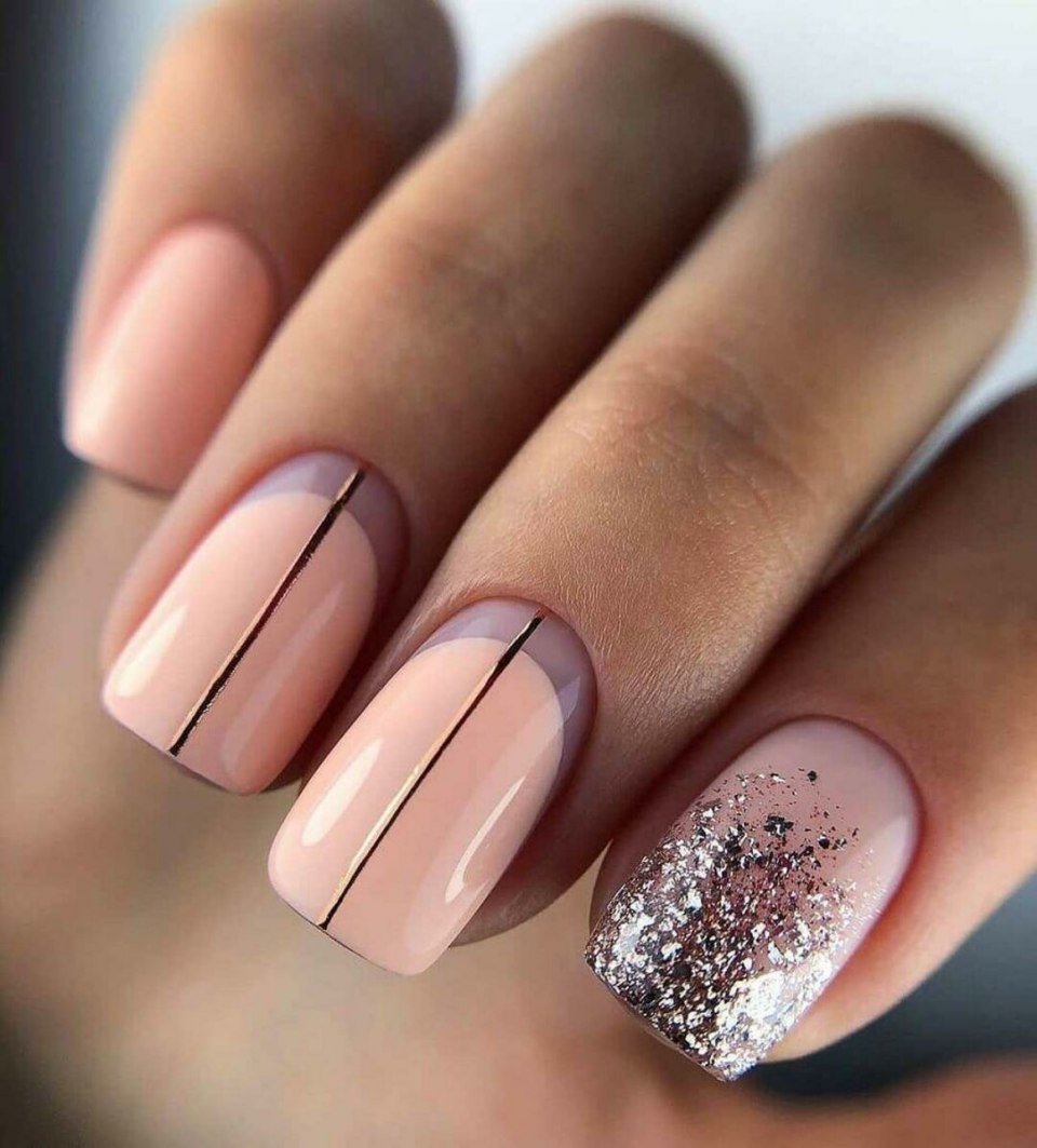 Маникюр нюдовый с дизайном на коротких ногтях 2021