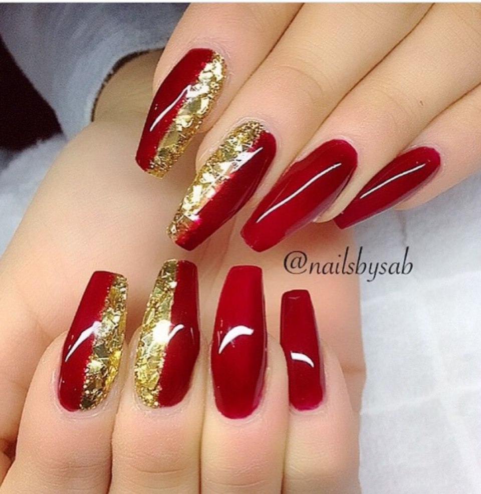 Маникюр красный бордовый с золотом