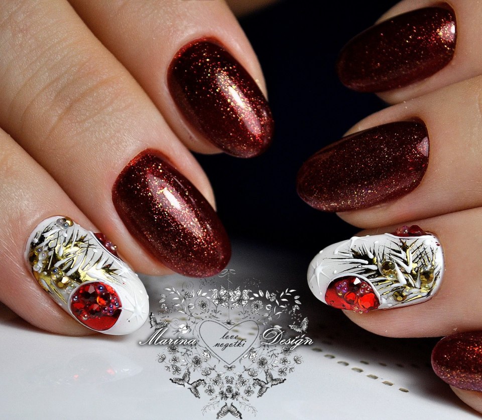 Бордовые ногти на новый год