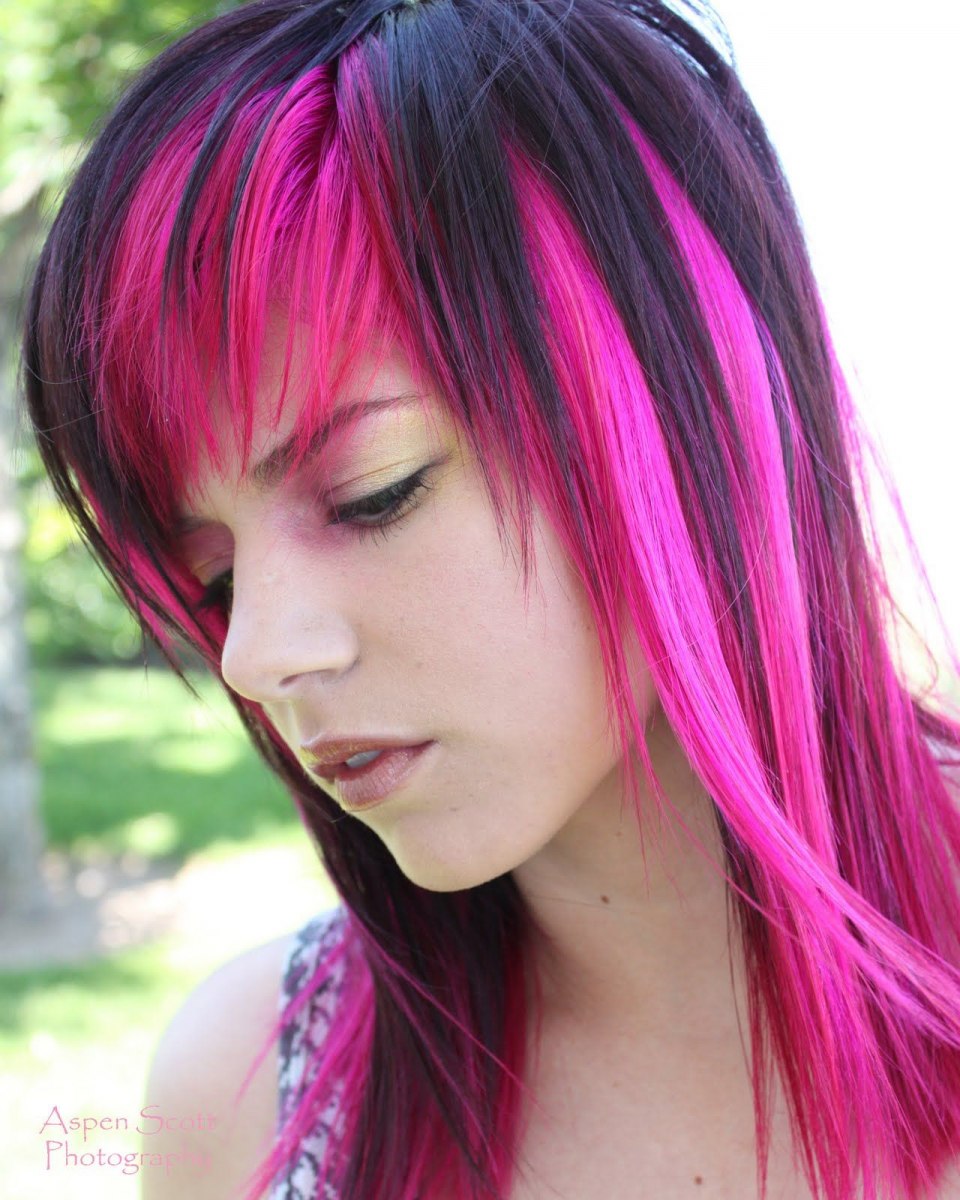 Черные волосы с розовыми прядями