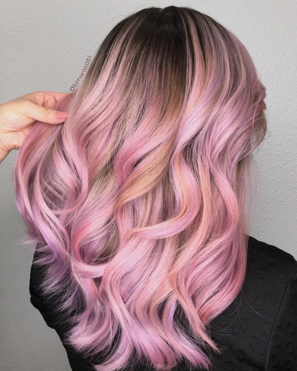 Розовый балаяж темные волосы 2021