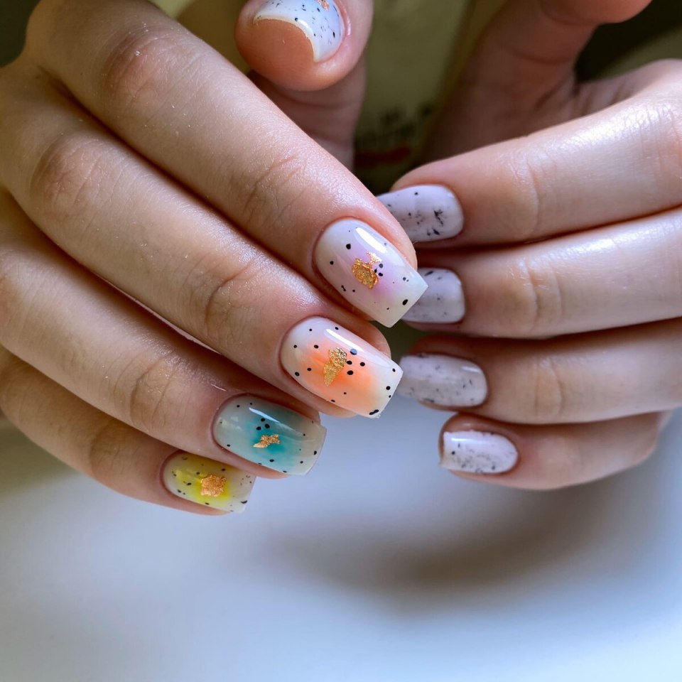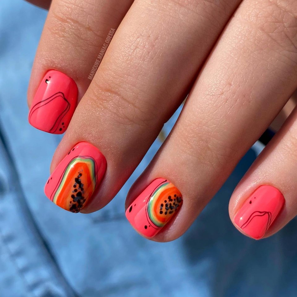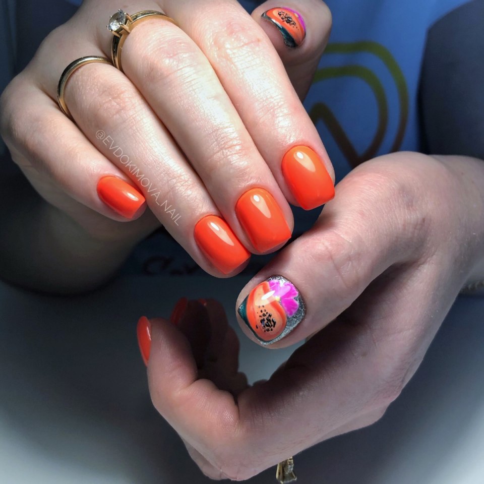 Яркий маникюр на короткие ногти