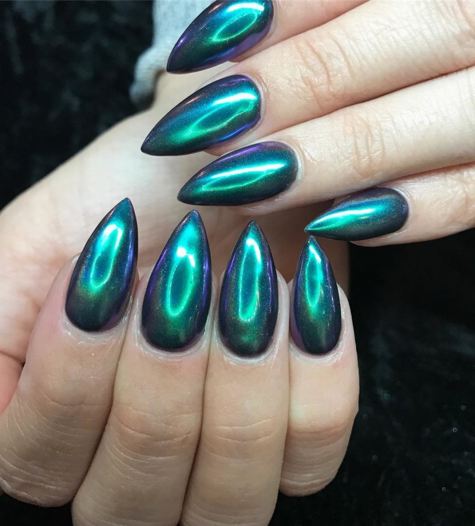 Кошачий глаз на ногтях миндальной формы (40 фото)