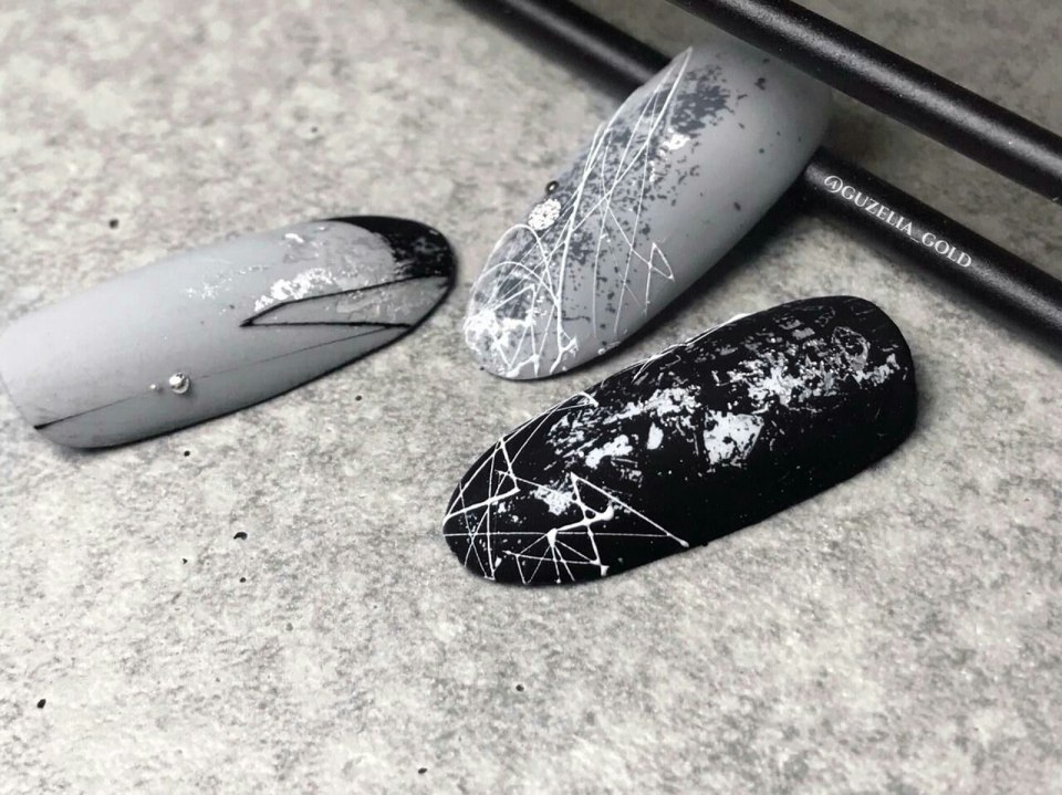 Молочный маникюр с фольгой и паутинкой (34 фото)