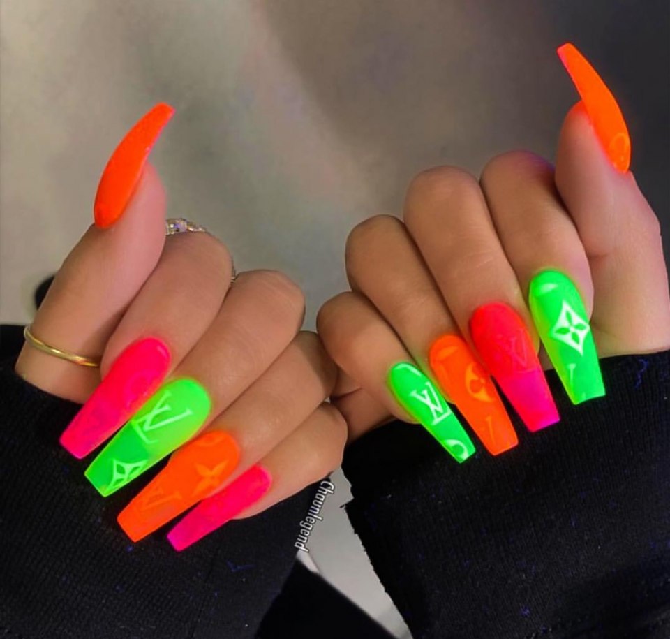 Длинный неоновый маникюр
