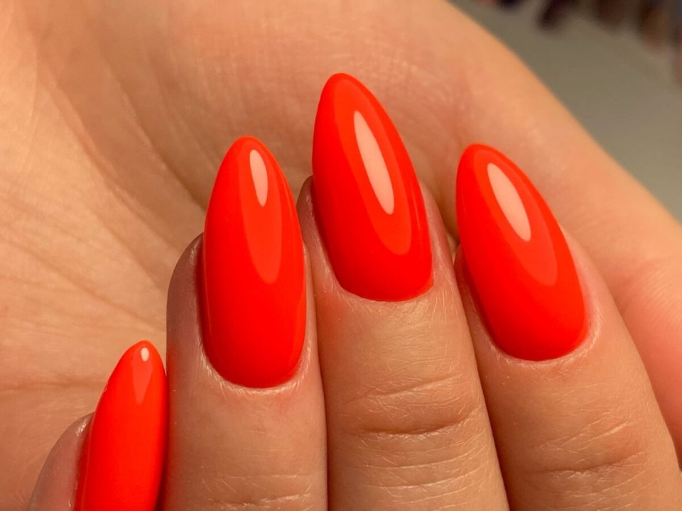Неоновый оранжевый маникюр