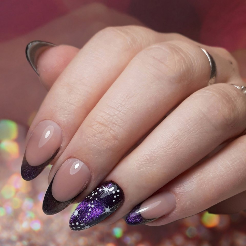Маникюр кошачий глаз френч