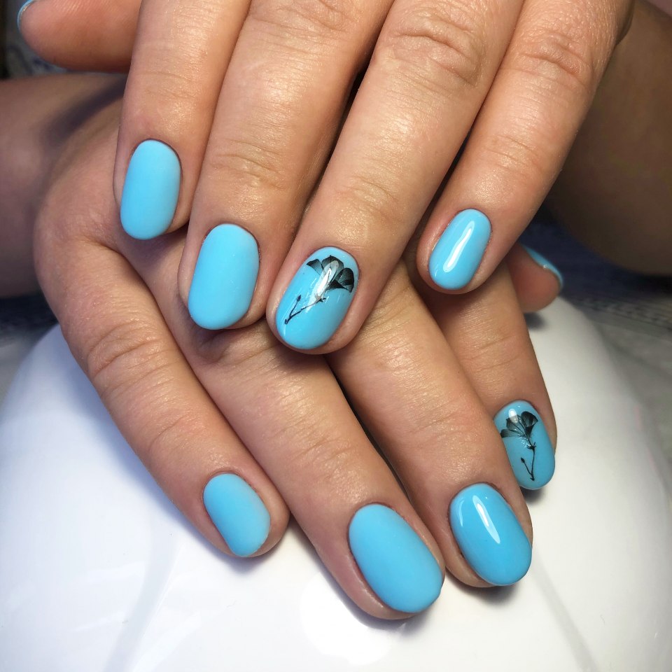 Маникюр с голубым гель лаком
