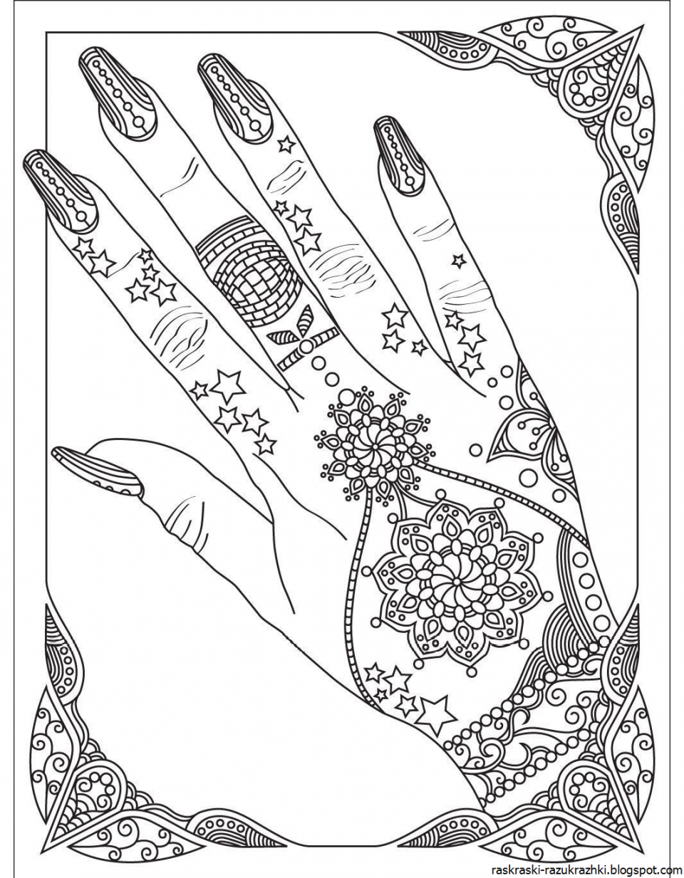 Рука с длинными ногтями раскраска
