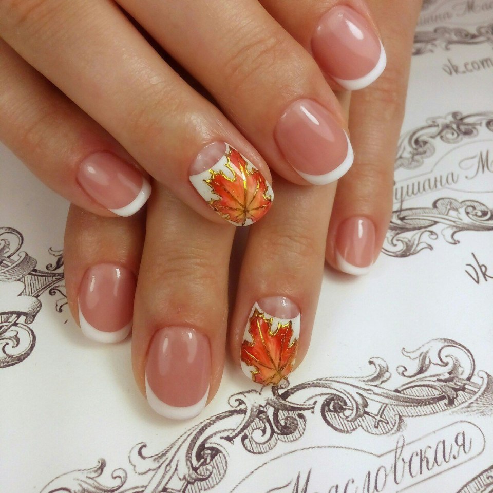 Френч на миндалевидных ногтях с дизайном 2020 осень