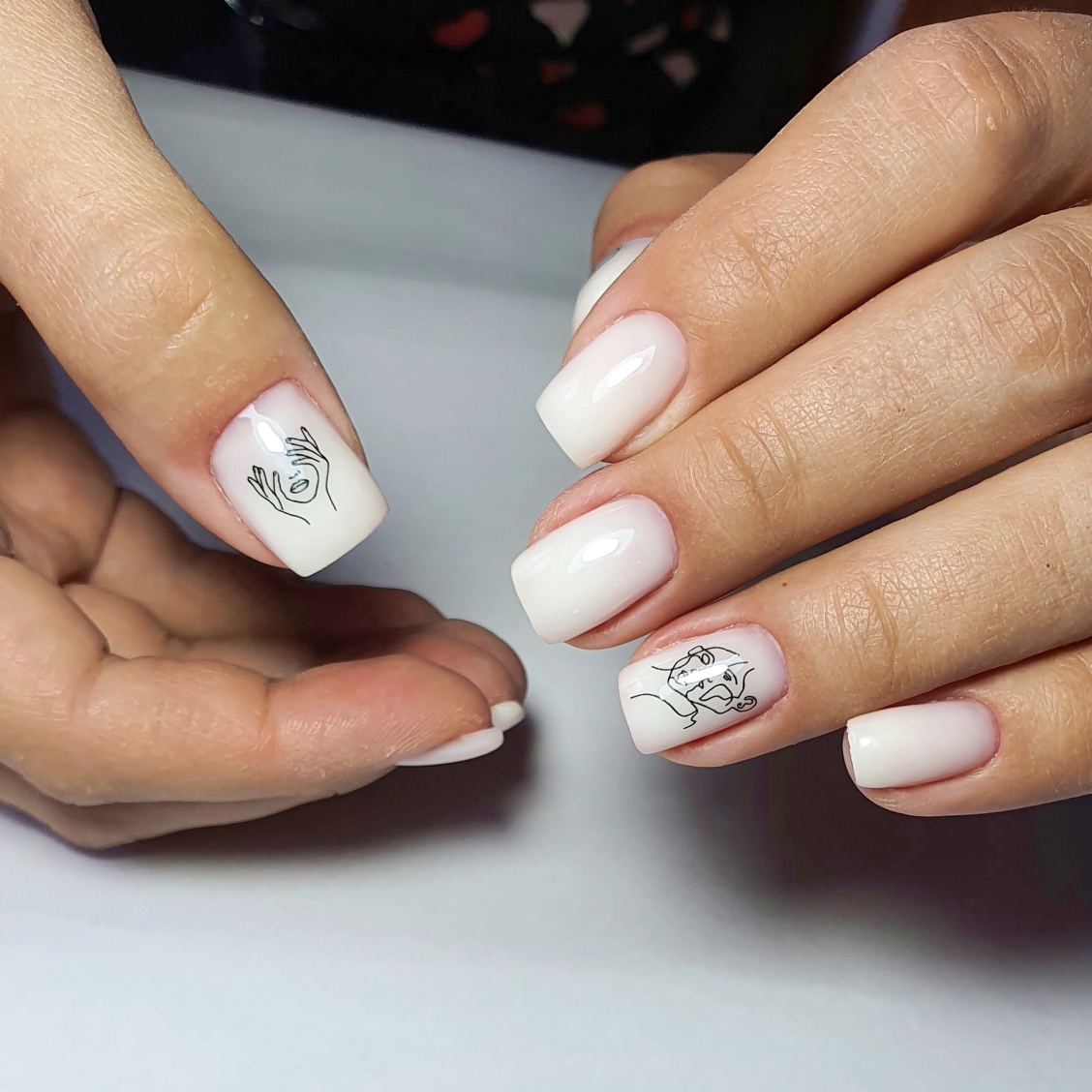 Геометрия на белых ногтях
