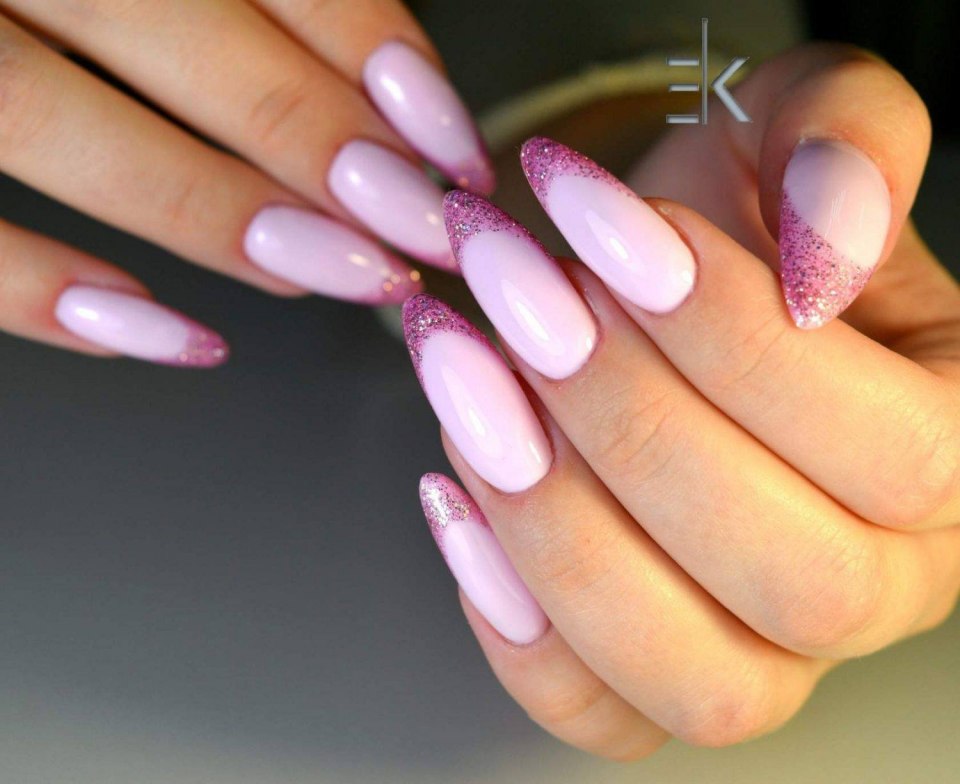 Френч на миндалевидных ногтях с блестками