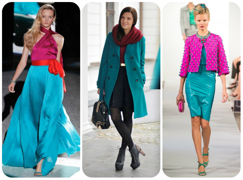 Сочетание бирюзового в одежде