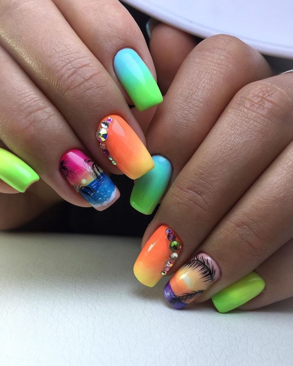 Яркие ногти с пальмами
