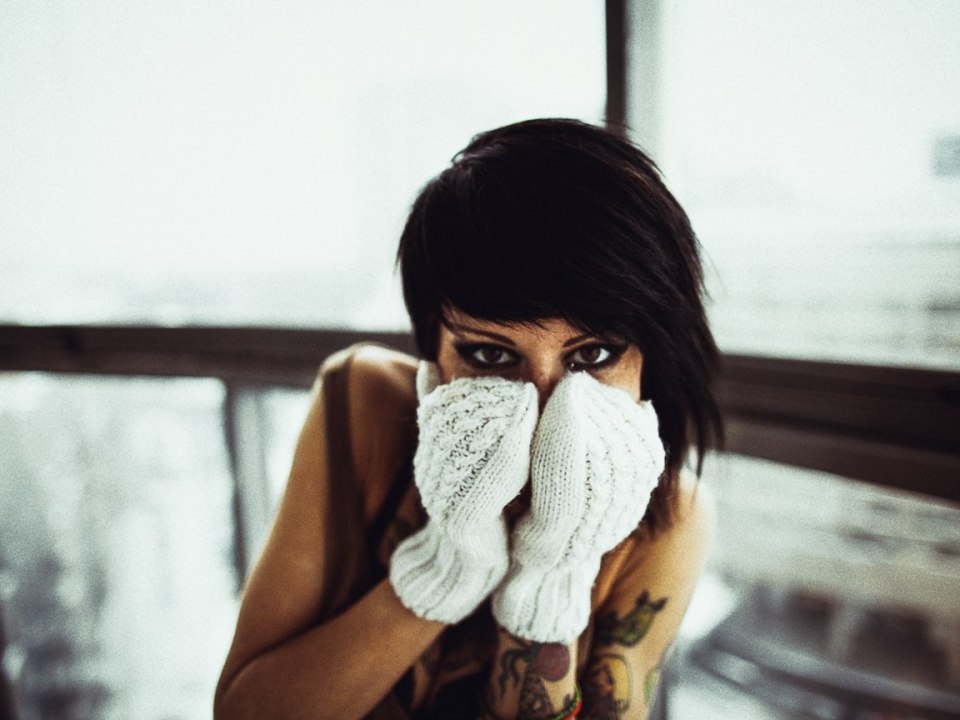 Девушка с короткими волосами зимой