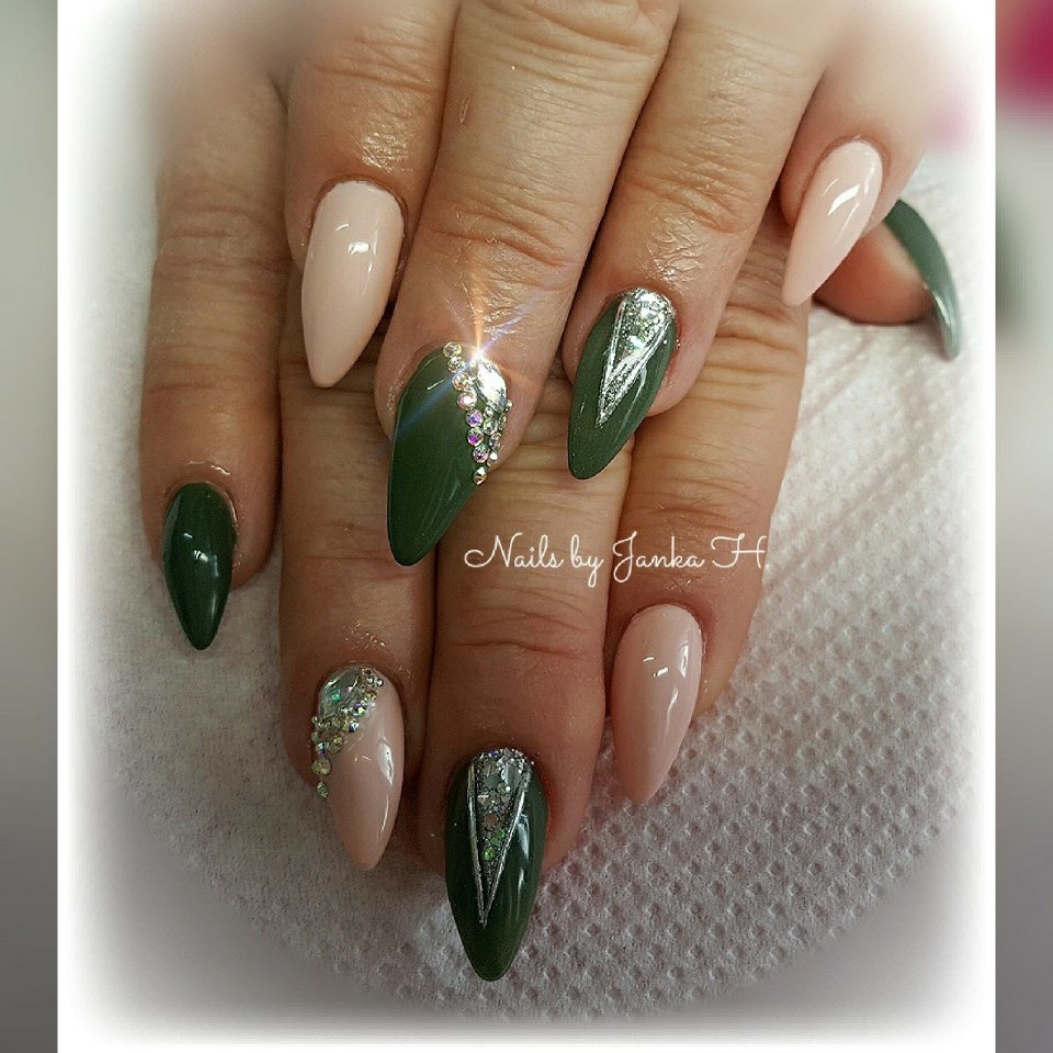 Салатовый френч на миндалевидных ногтях (26 фото)