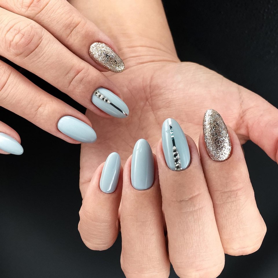 Дизайн ногтей миндаль с полосками из фольги (31 фото)