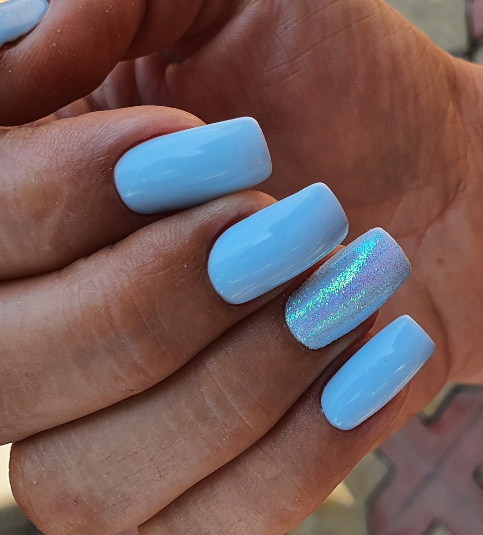 Самый актуальный маникюр на сегодняшний день голубой (38 фото)