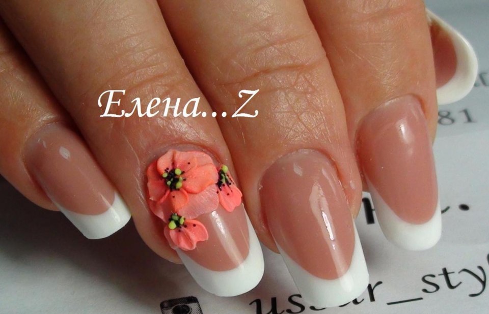 Маникюр френч с лепкой нежный
