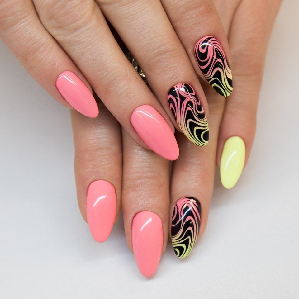 Маникюр лето на миндалевидные ногти