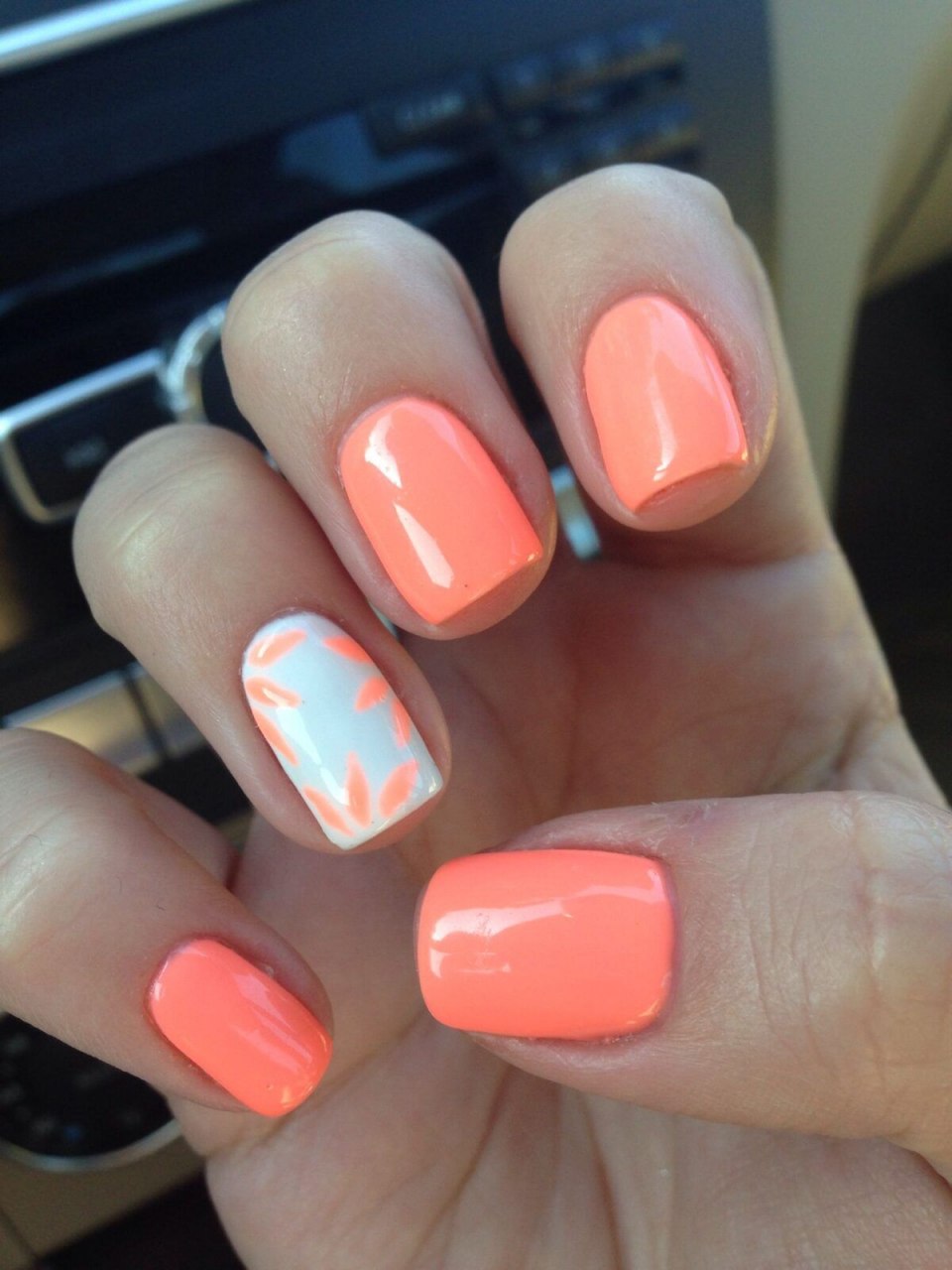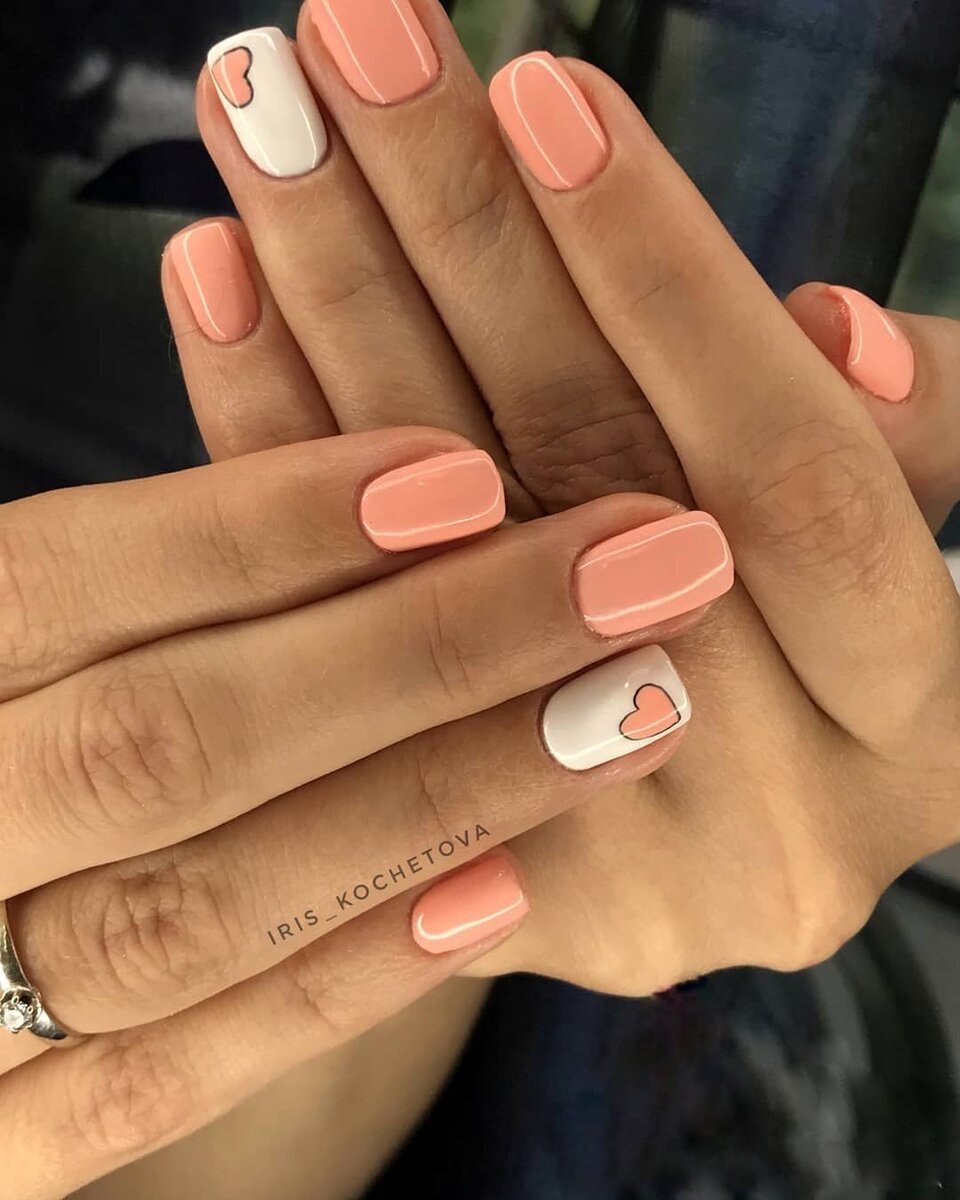 Маникюр на короткие ногти персиковые оттенки (44 фото)