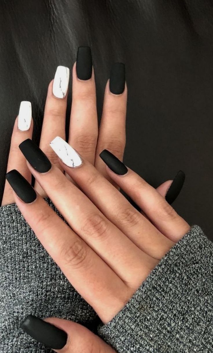 Черно белый матовый маникюр