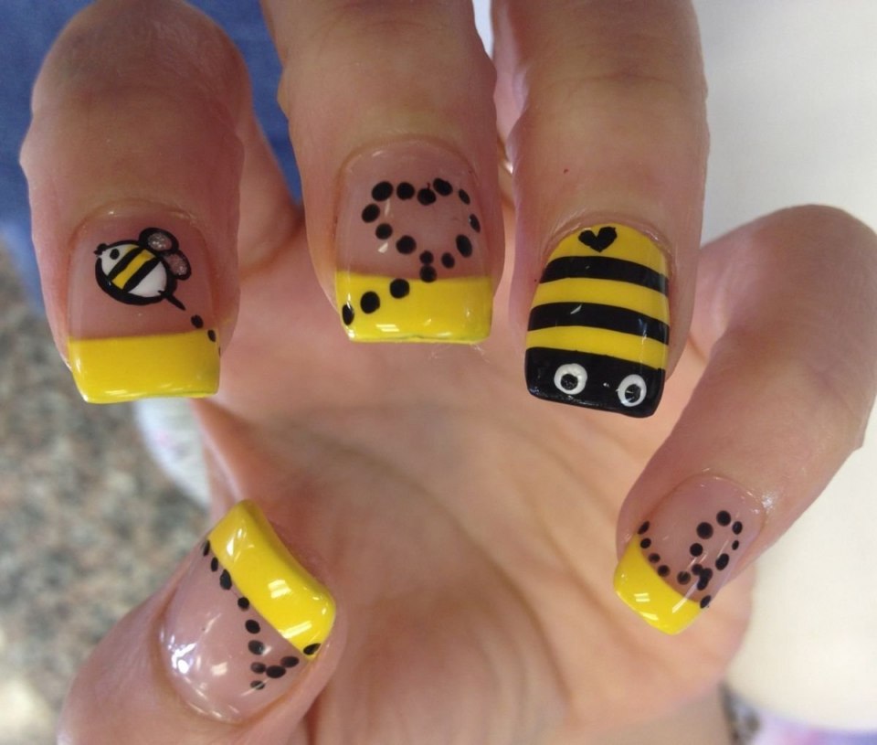 Маникюр с пчелами на короткие ногти
