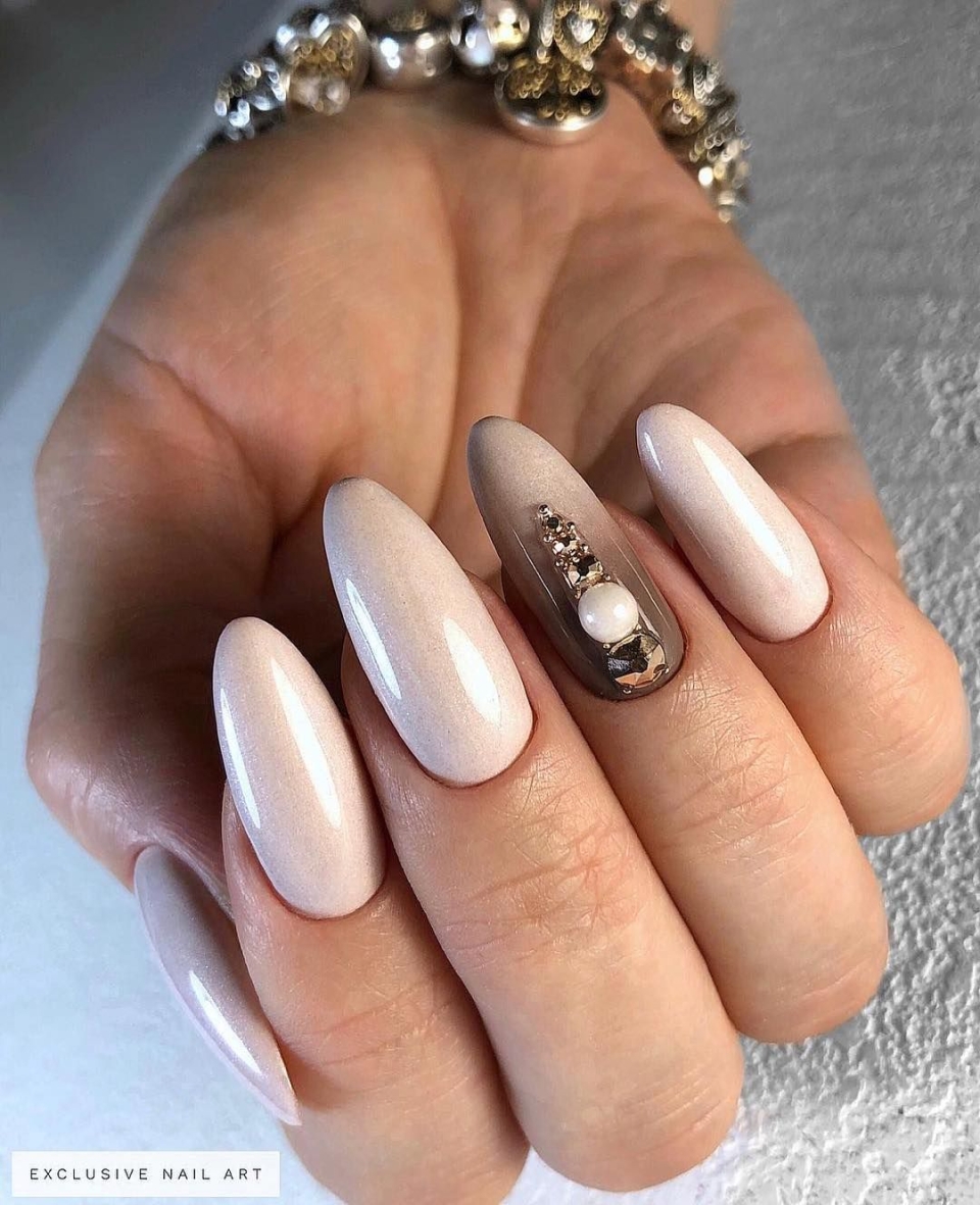 Маникюр с жемчужной втиркой и стразами (24 фото)