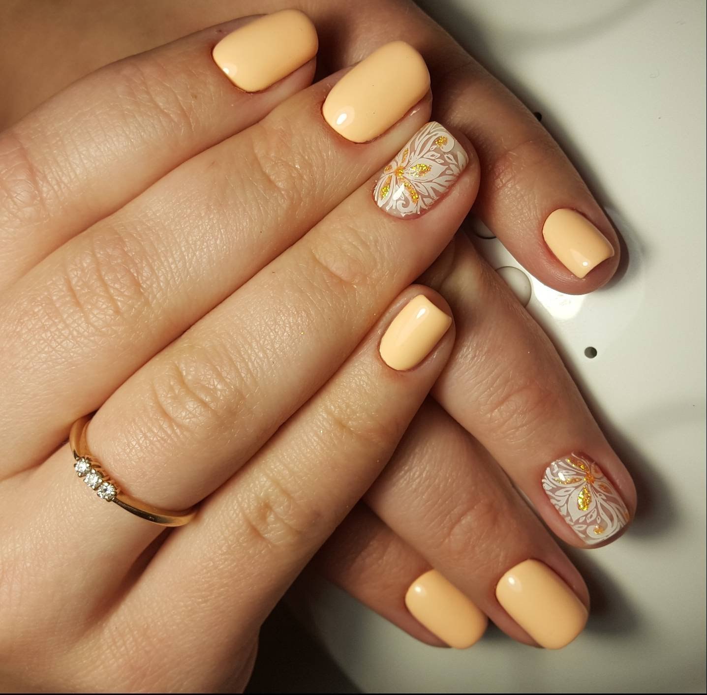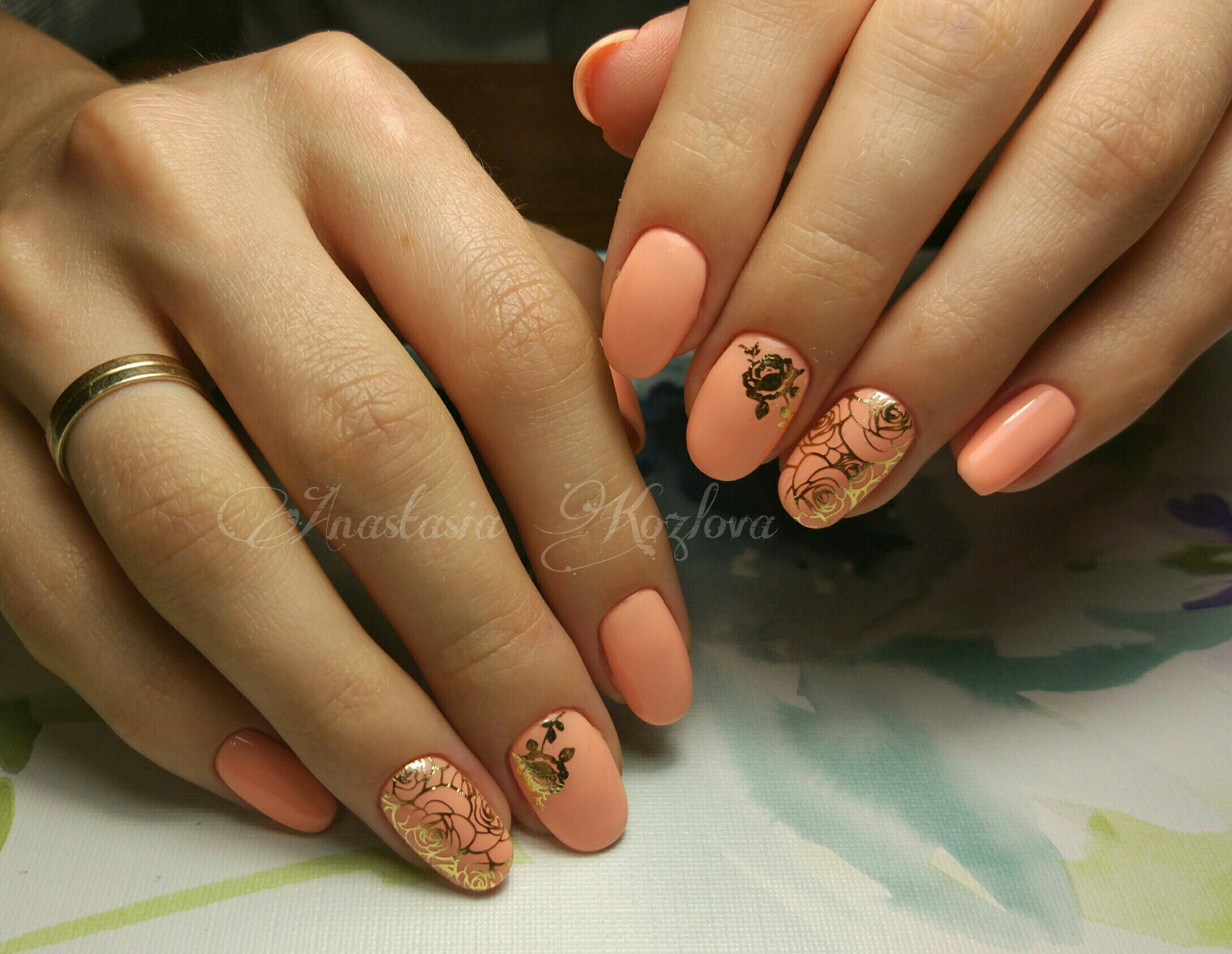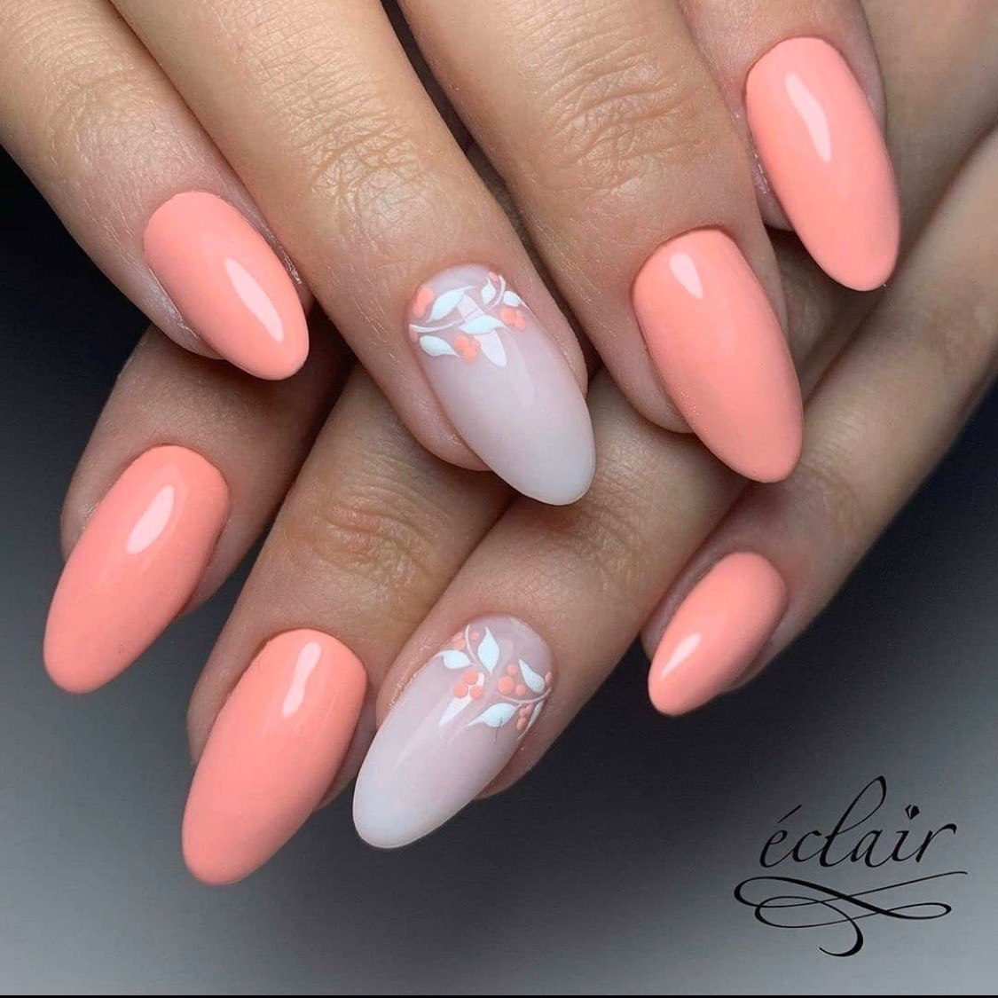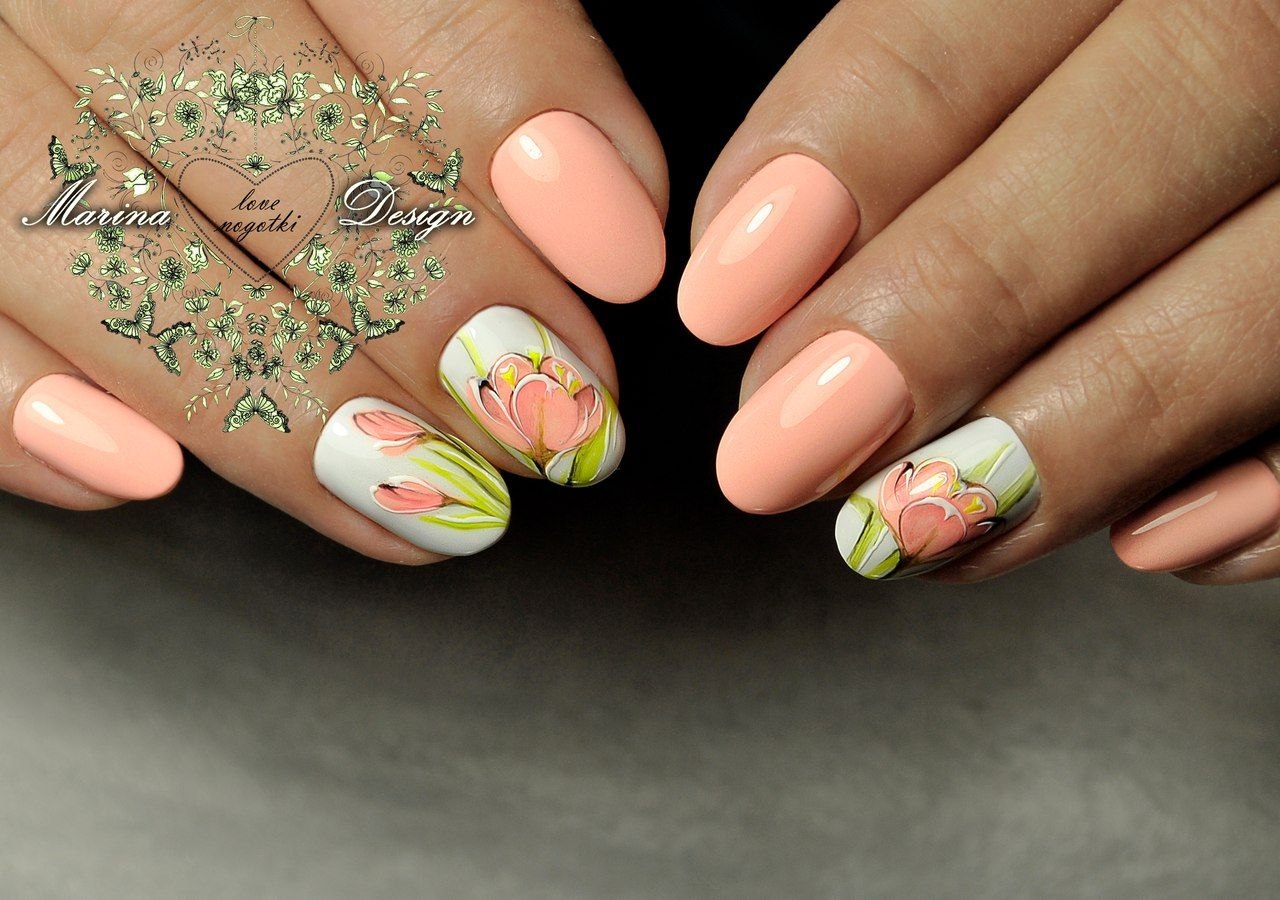 Дизайн ногтей персикового цвета с цветами (40 фото)