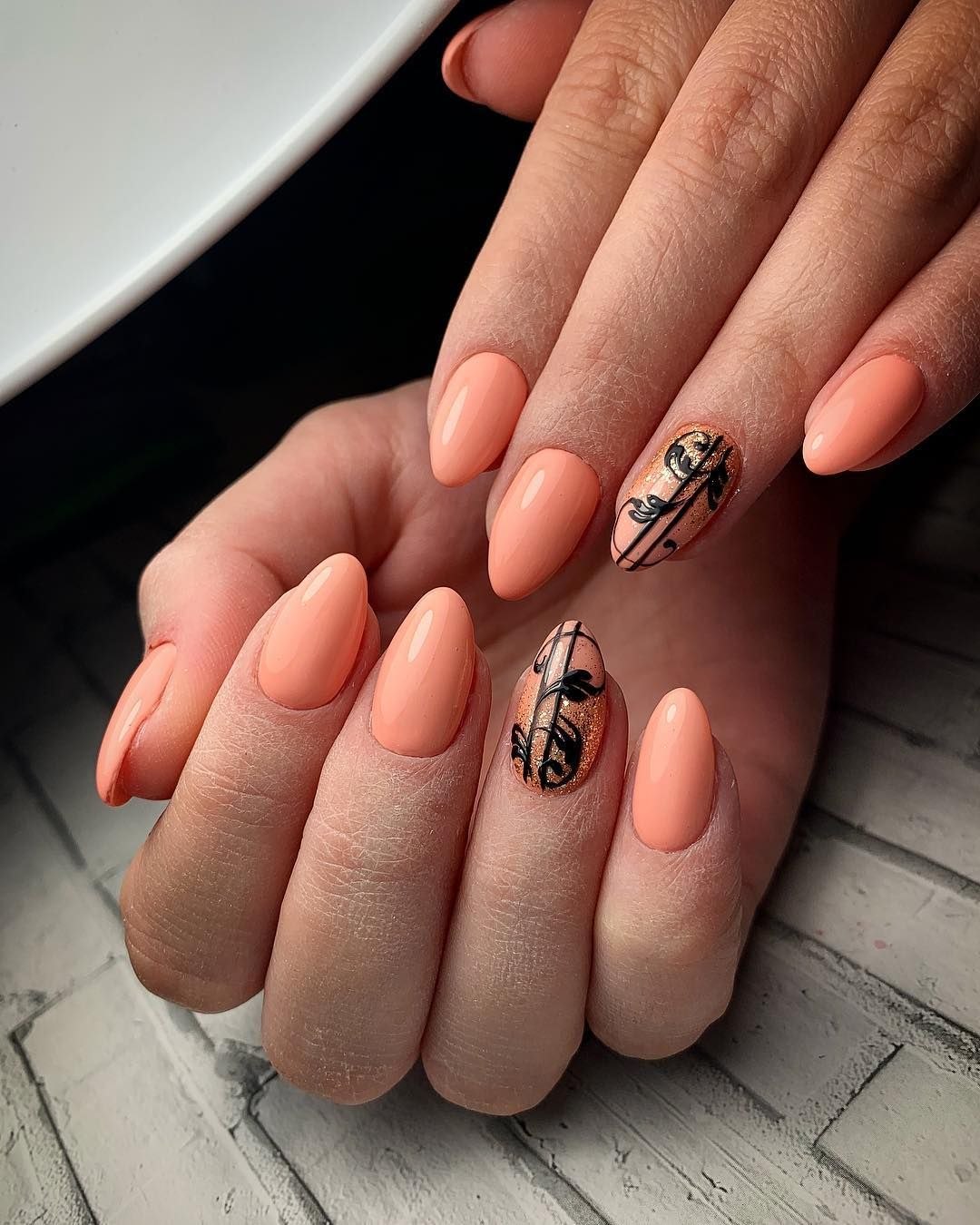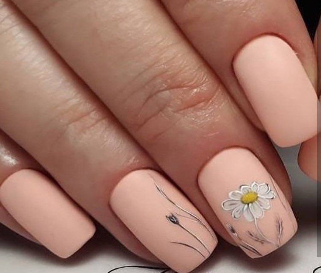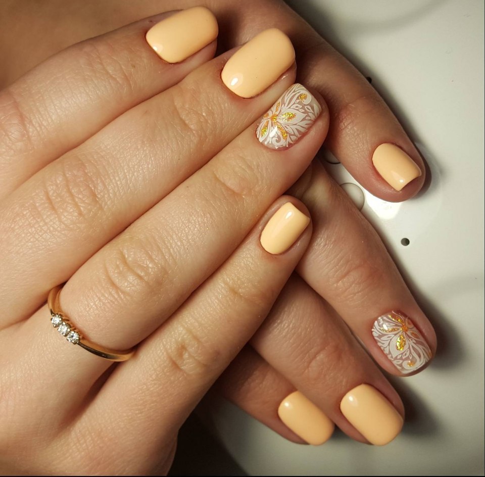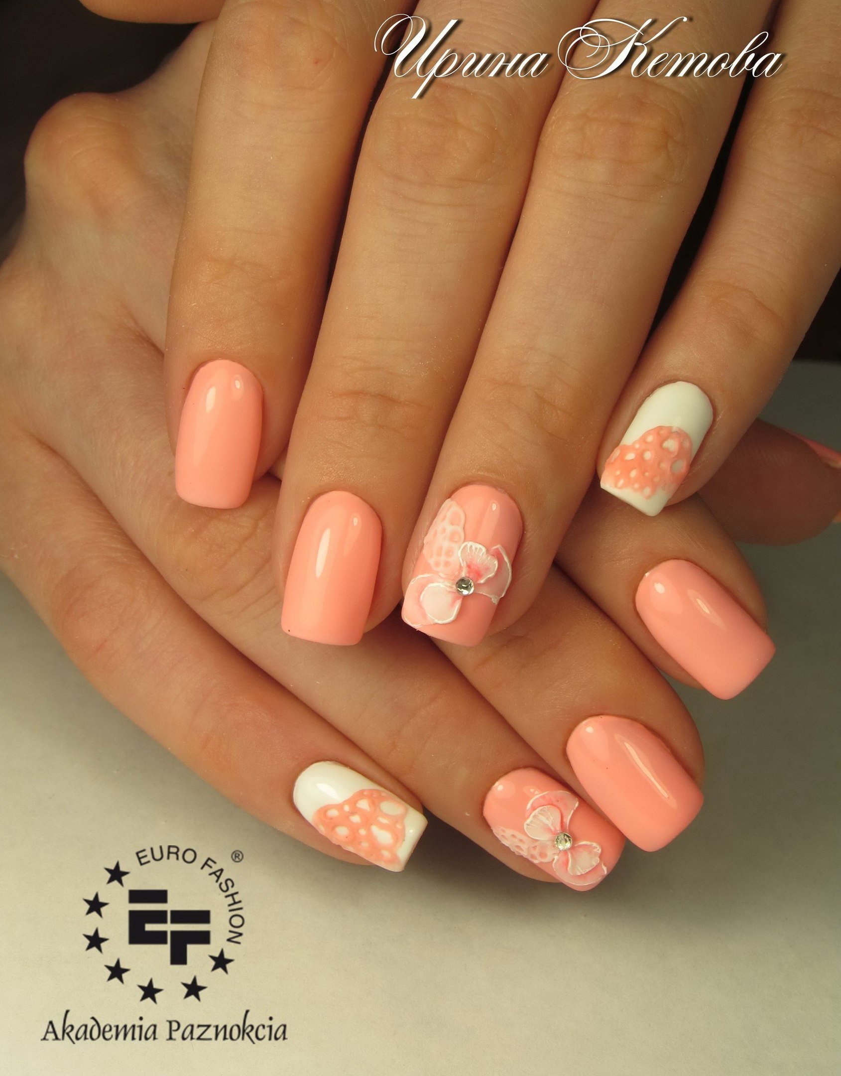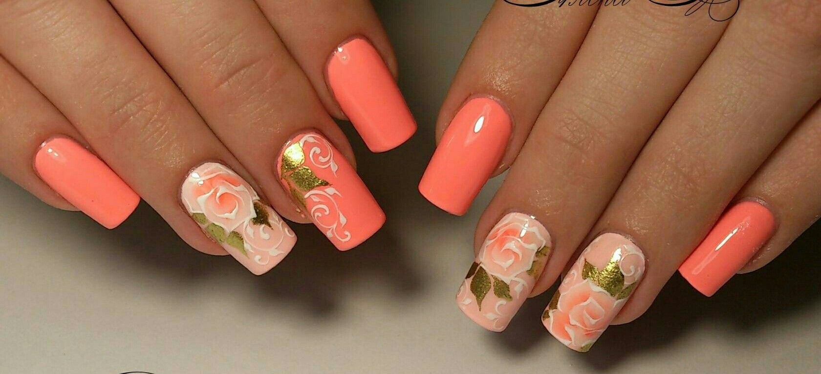 Дизайн ногтей персикового цвета с цветами (40 фото)