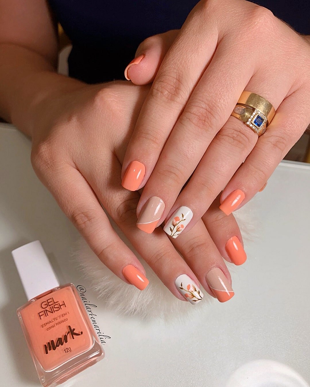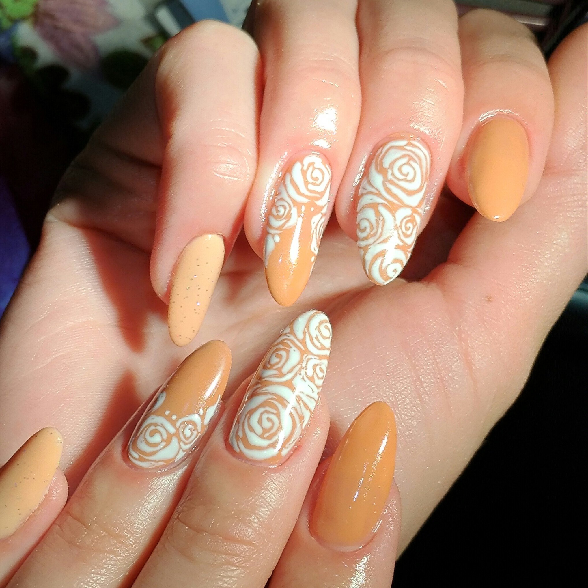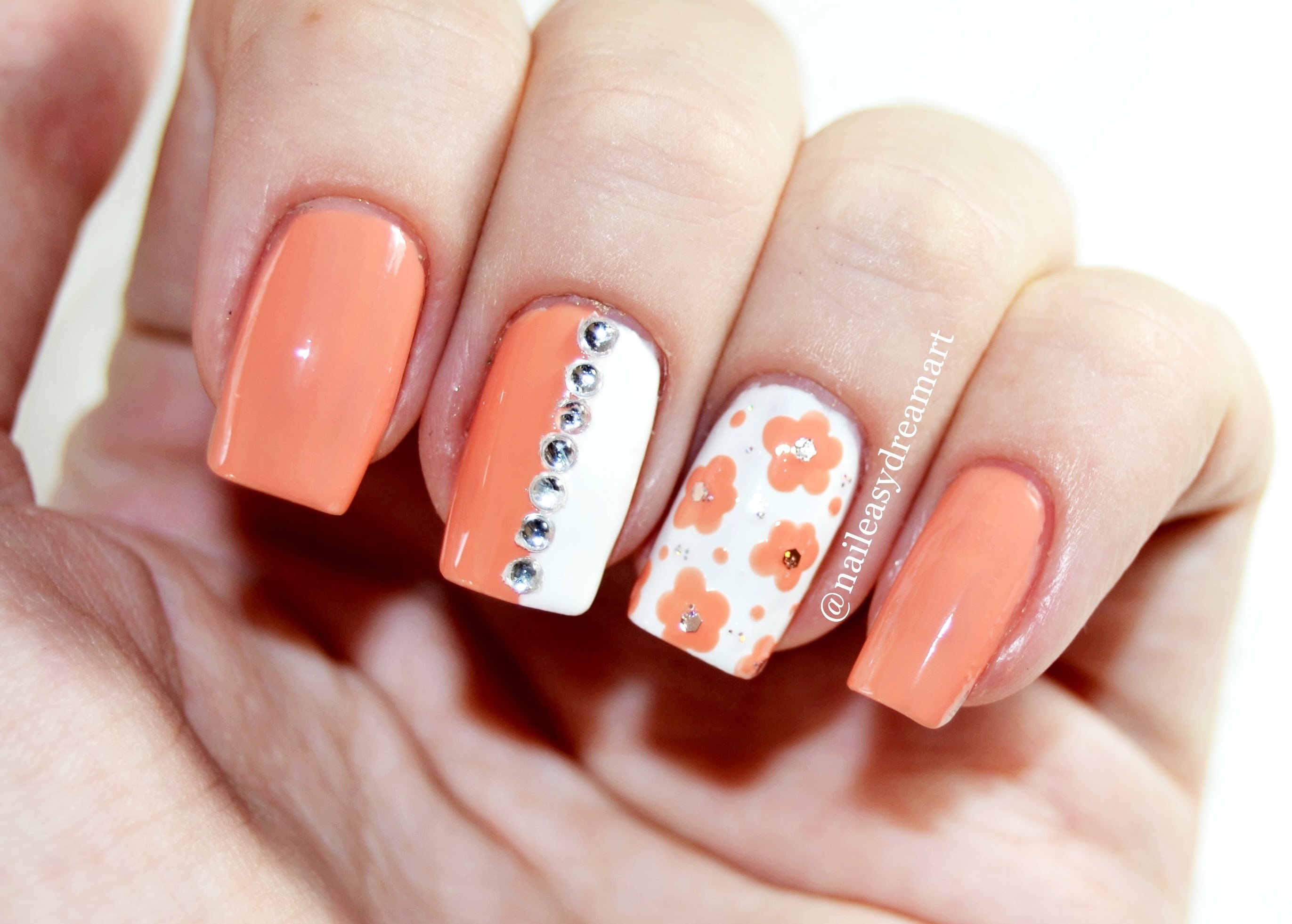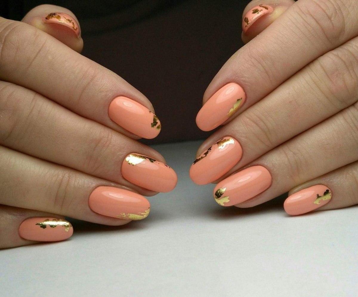 Дизайн ногтей персикового цвета с цветами (40 фото)