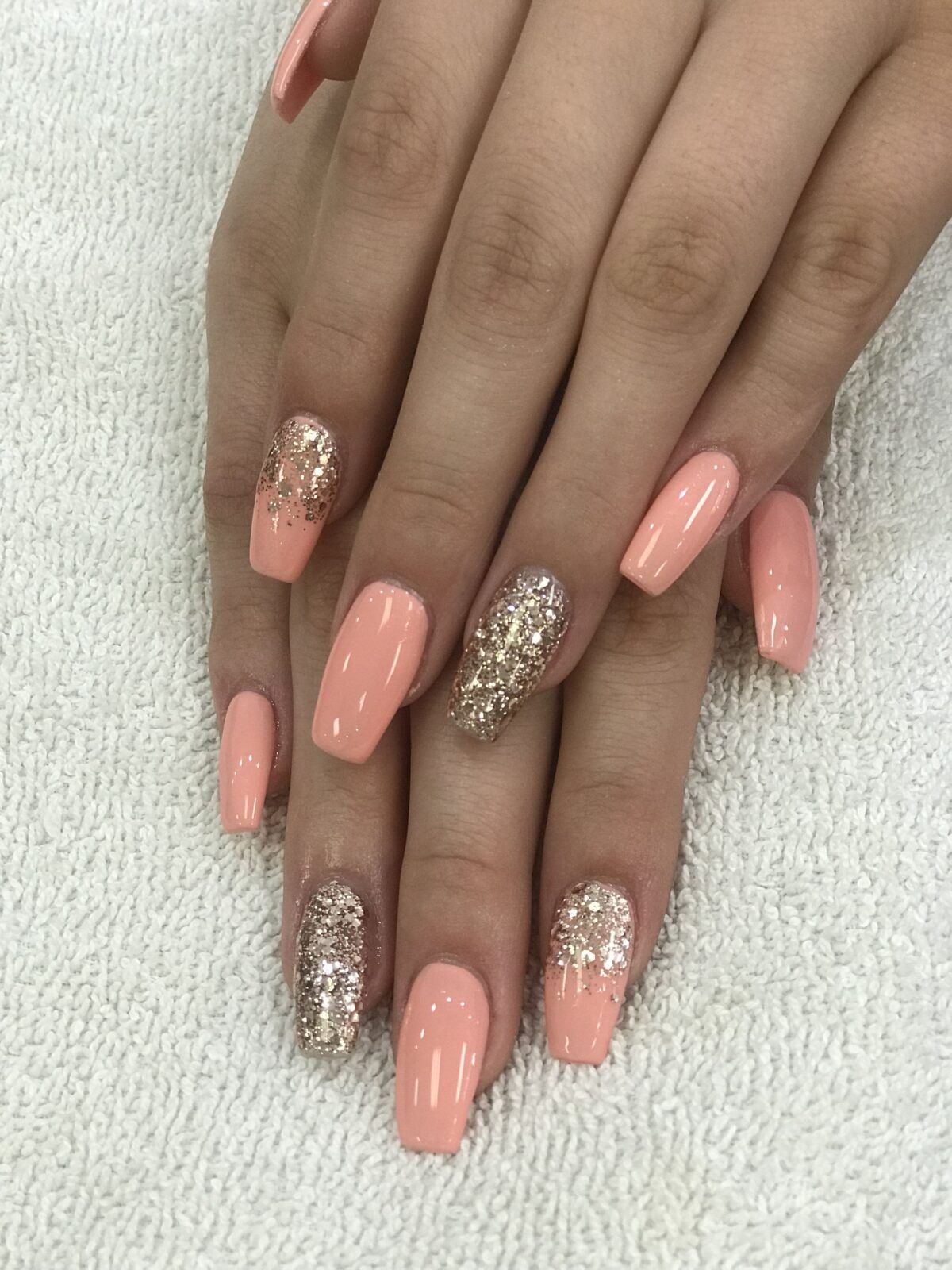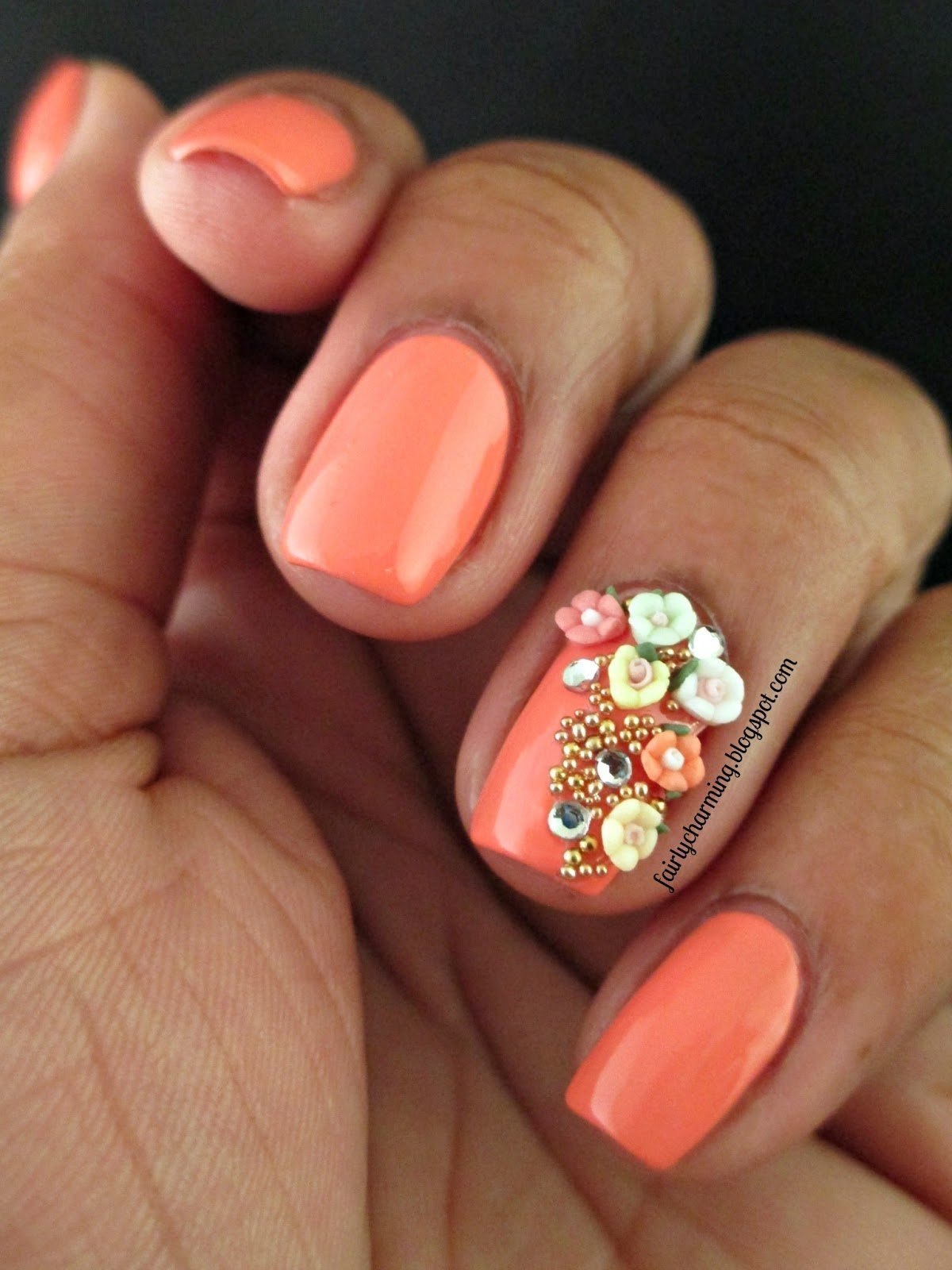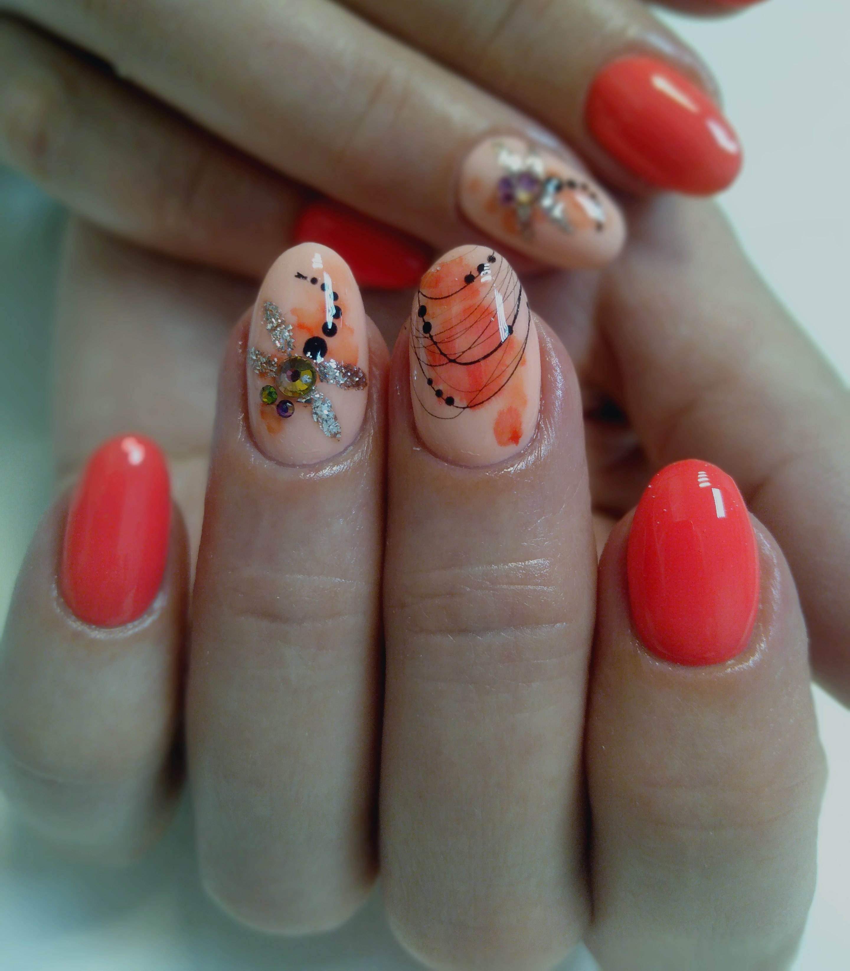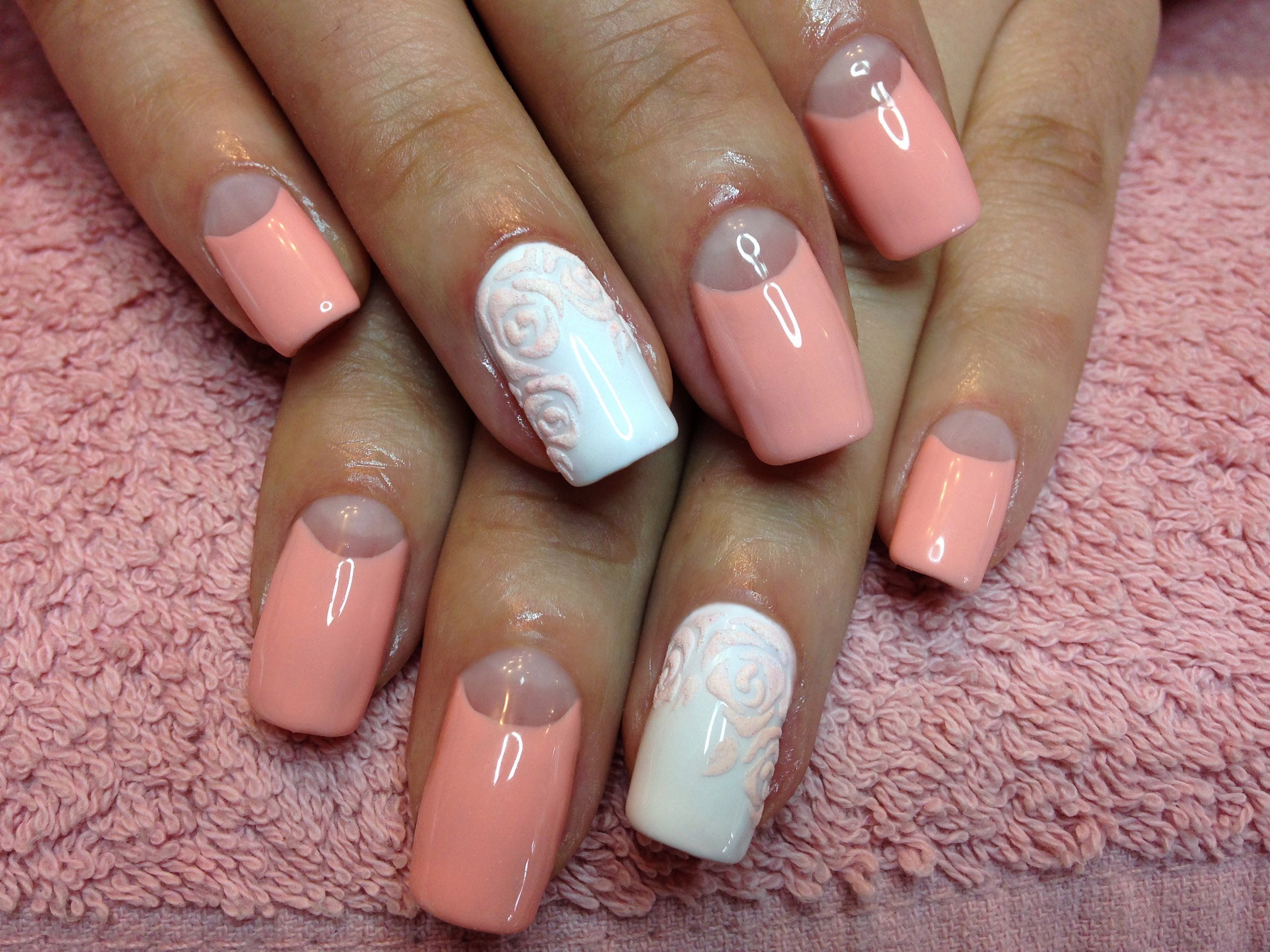 Дизайн ногтей персикового цвета с цветами (40 фото)